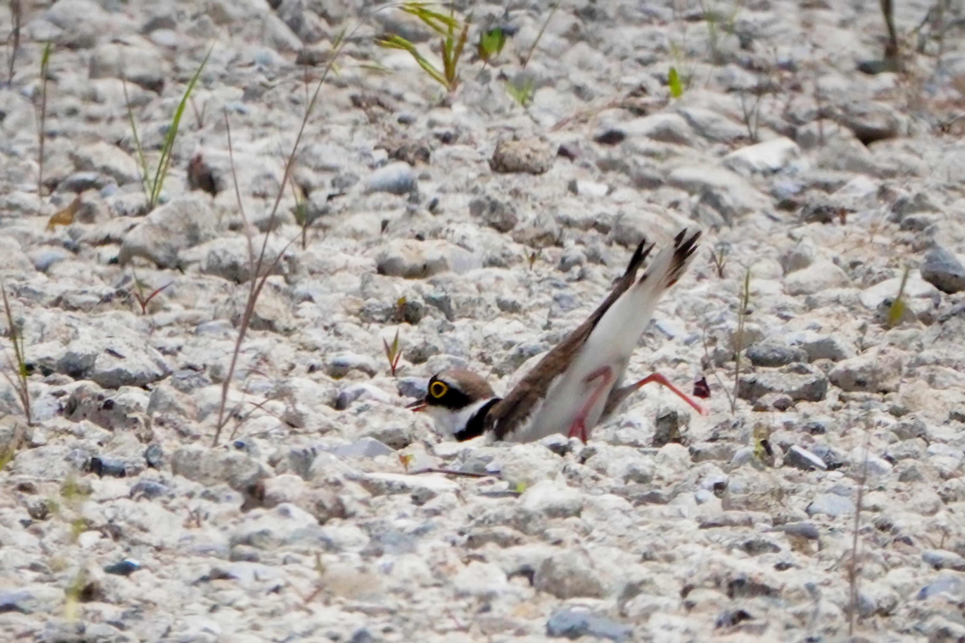 1羽の可愛い雛を育てている雌親の前に突然侵入して来たコチドリのペア。