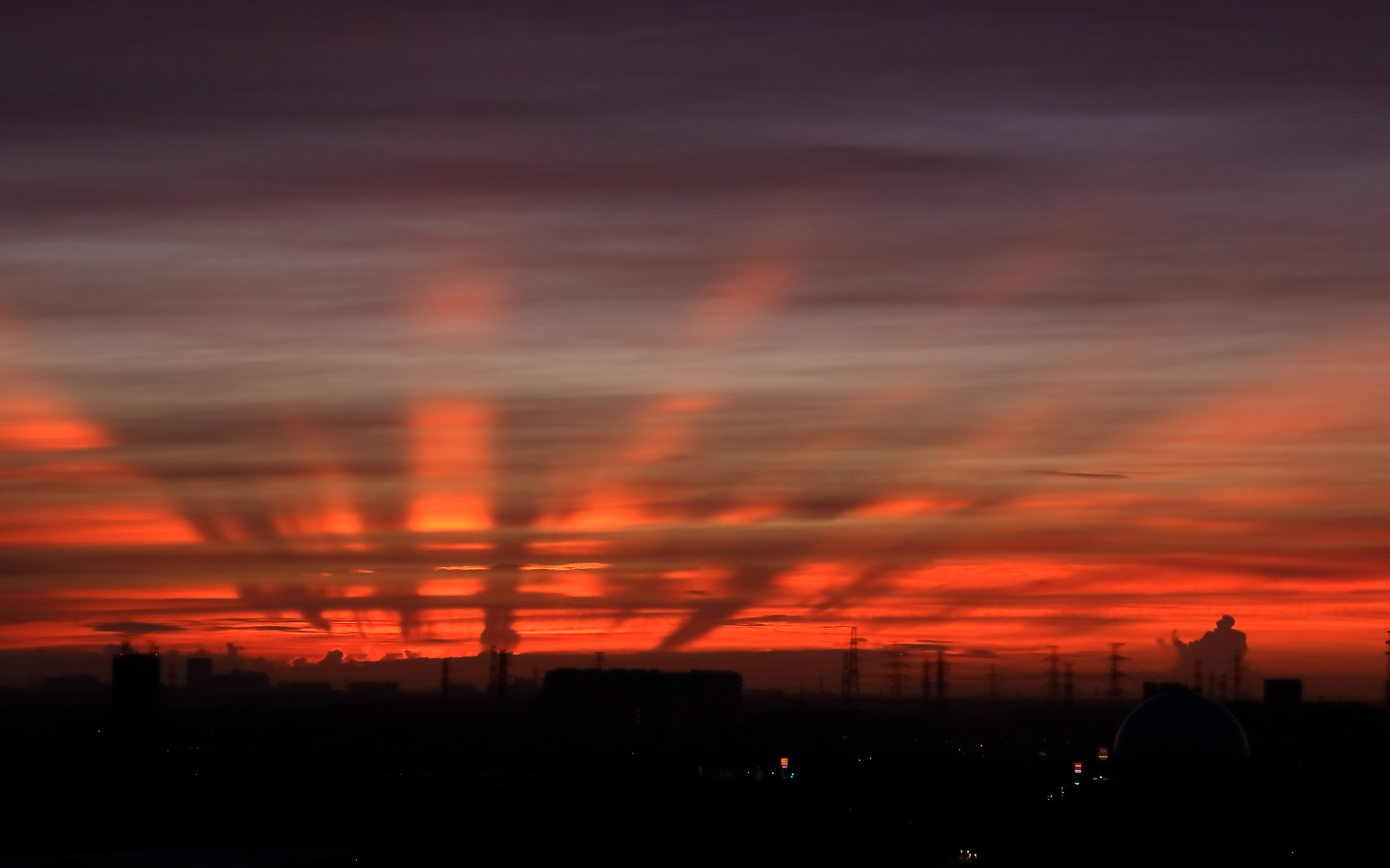 日の出時刻よりも25分程早い4時45分頃から、東の空間に現れた巨大な「薄明光線」。