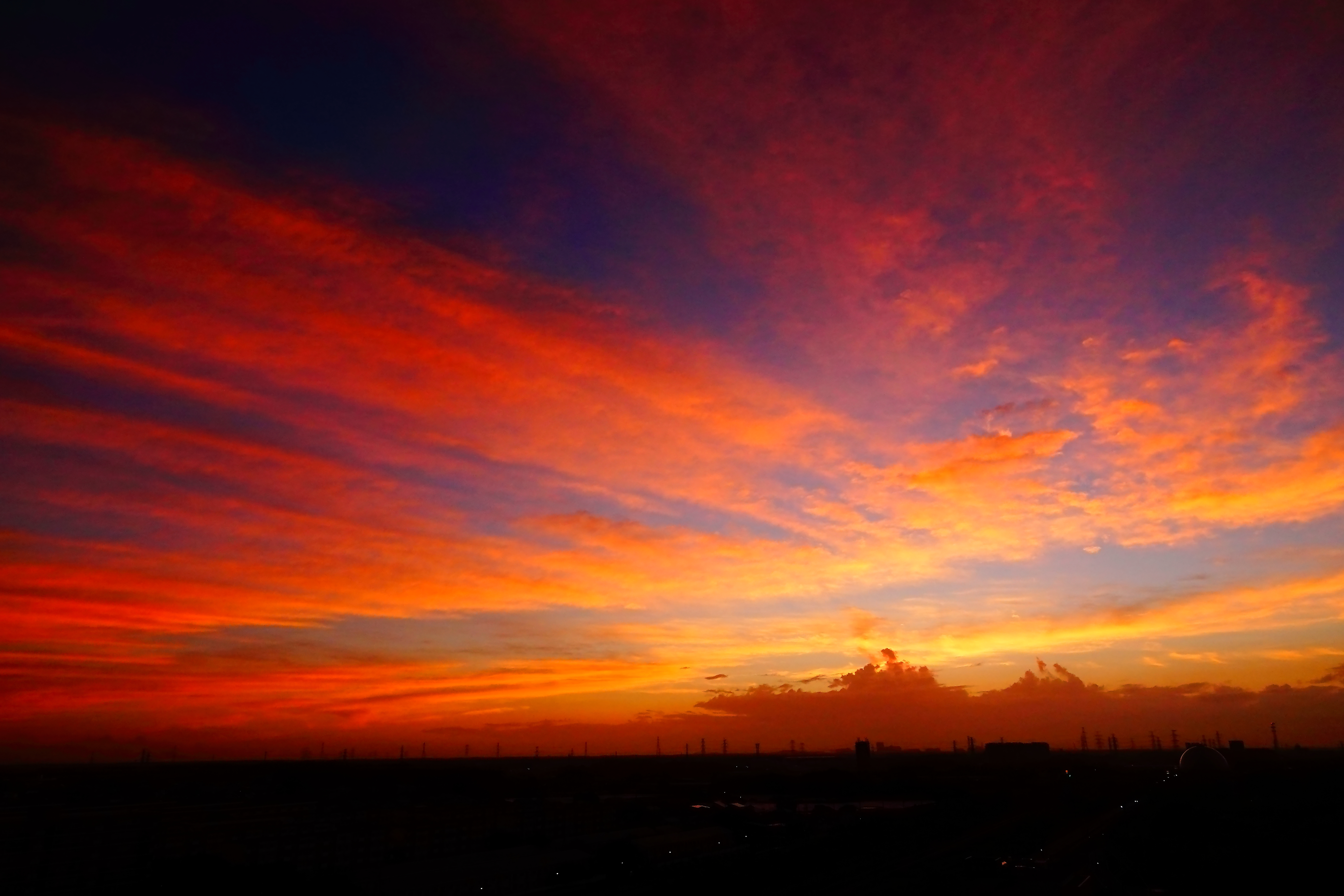 【台風10号期間中の朝焼け:3連作の3】
