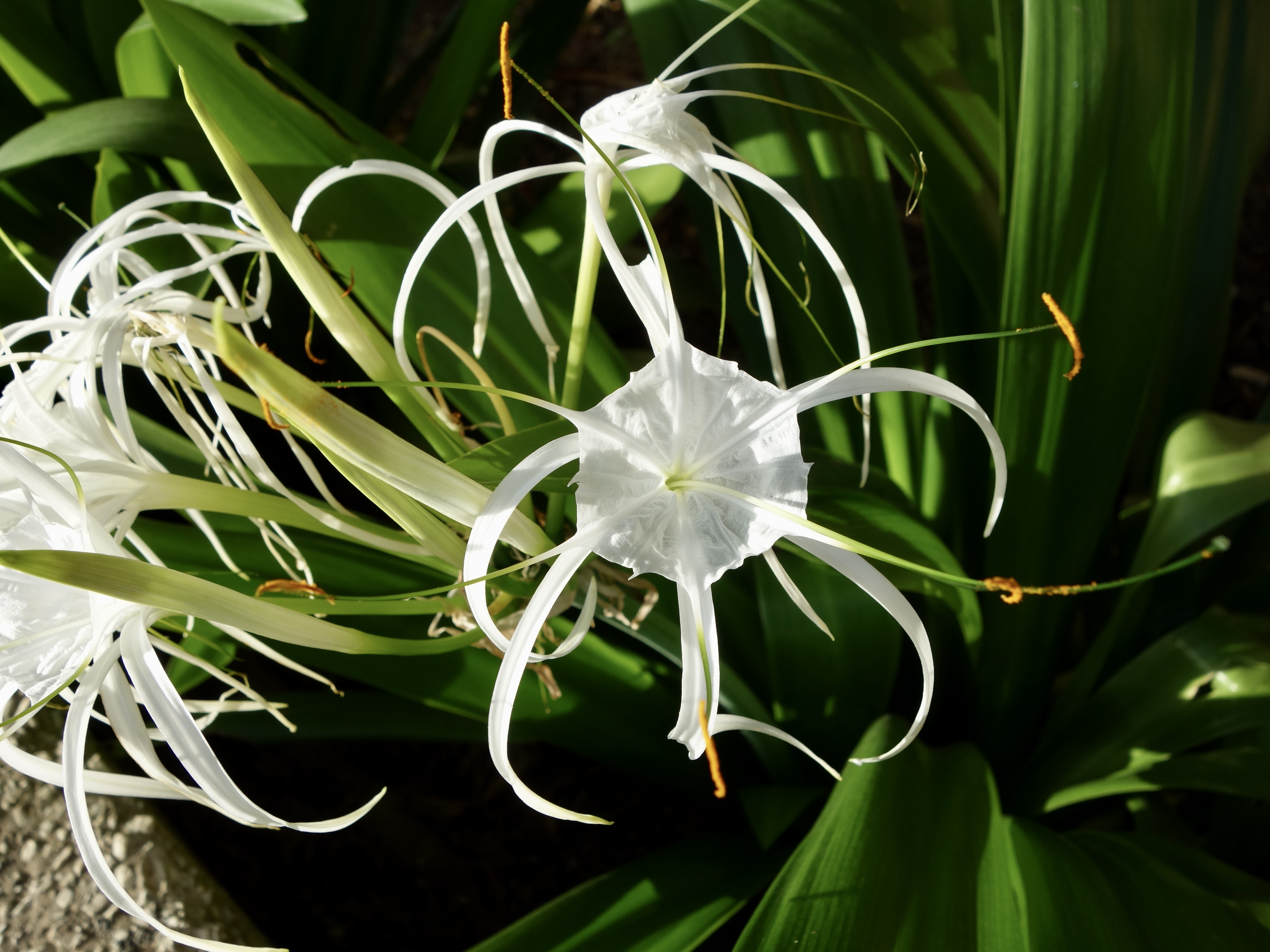 秋、郷愁を誘うもののひとつに、ヒガンバナの花があります。私が生活している周辺には、ヒガンバナがありませんが、ヒガンバナ科ヒメノカリス属の花があります。ヒメノカリスの中で、Hymenocallis littoralis という種類のようです。(私が知る限り、白色しか、ありません。)