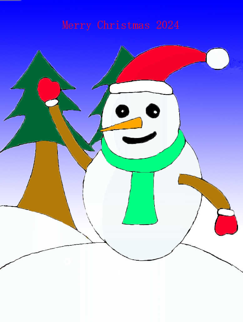 今年も画材がじゅうぶん揃わす、鉛筆とペンの下書きとPhotosop Elementsで仕上げました。色塗りをAdobe FrescoやMedibangで試しましたけど、選択範囲の設定で苦労し、諦めました。