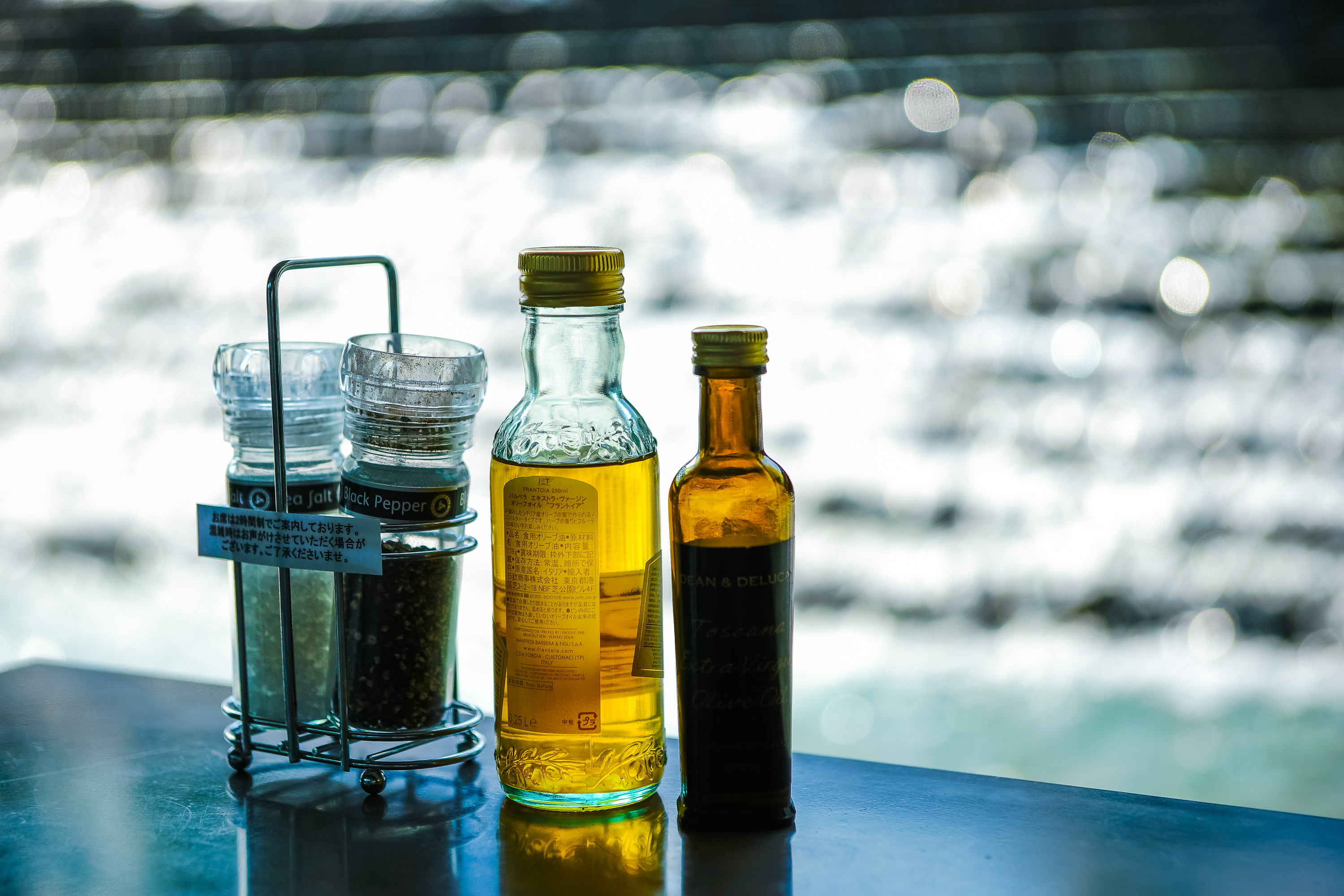 梅田グランフロントの滝の見えるカフェテラスでアイスコーヒーを飲みながら撮影しました。