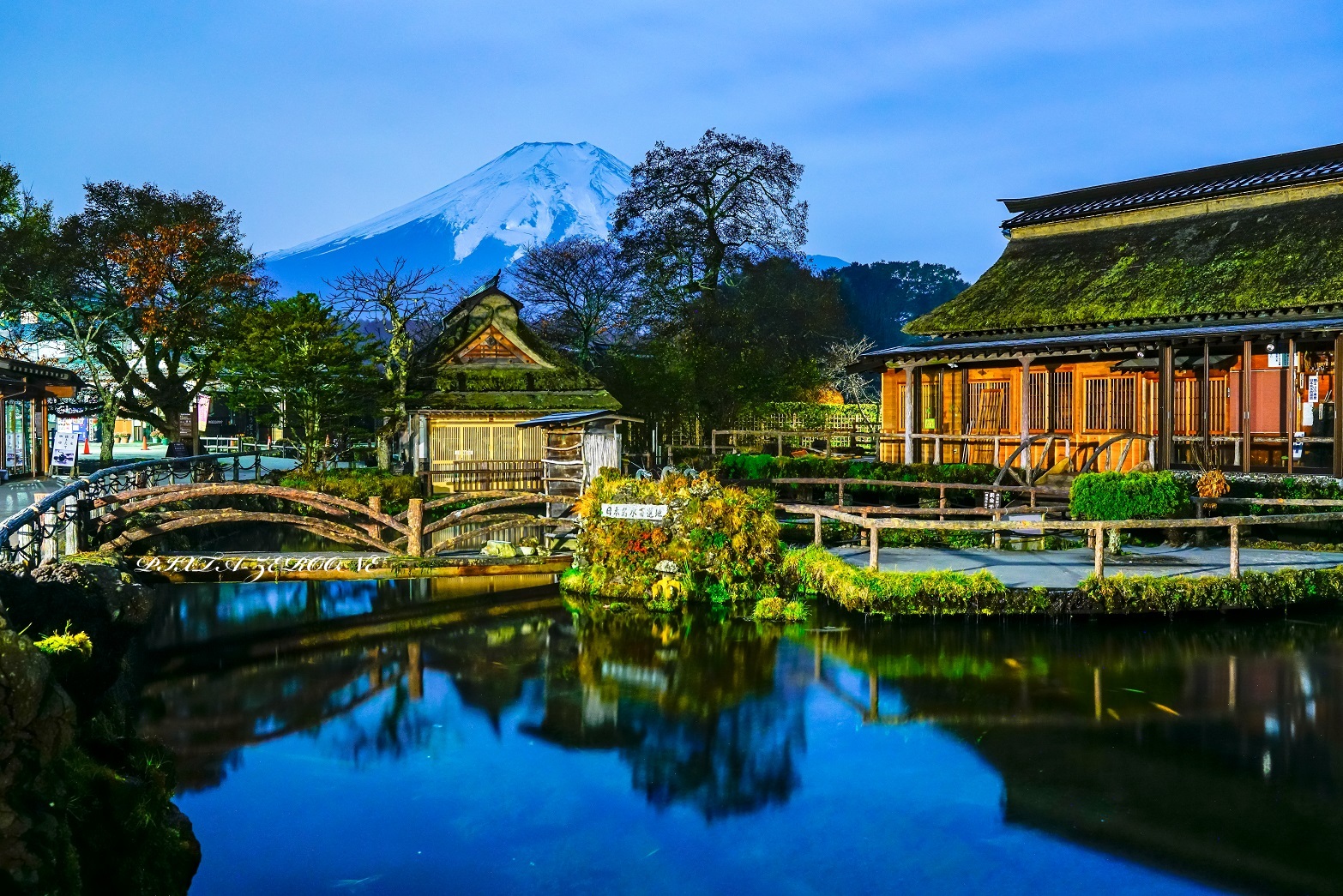 観光客で溢れかえる昼間と違い、静まり返った深夜の忍野八海
