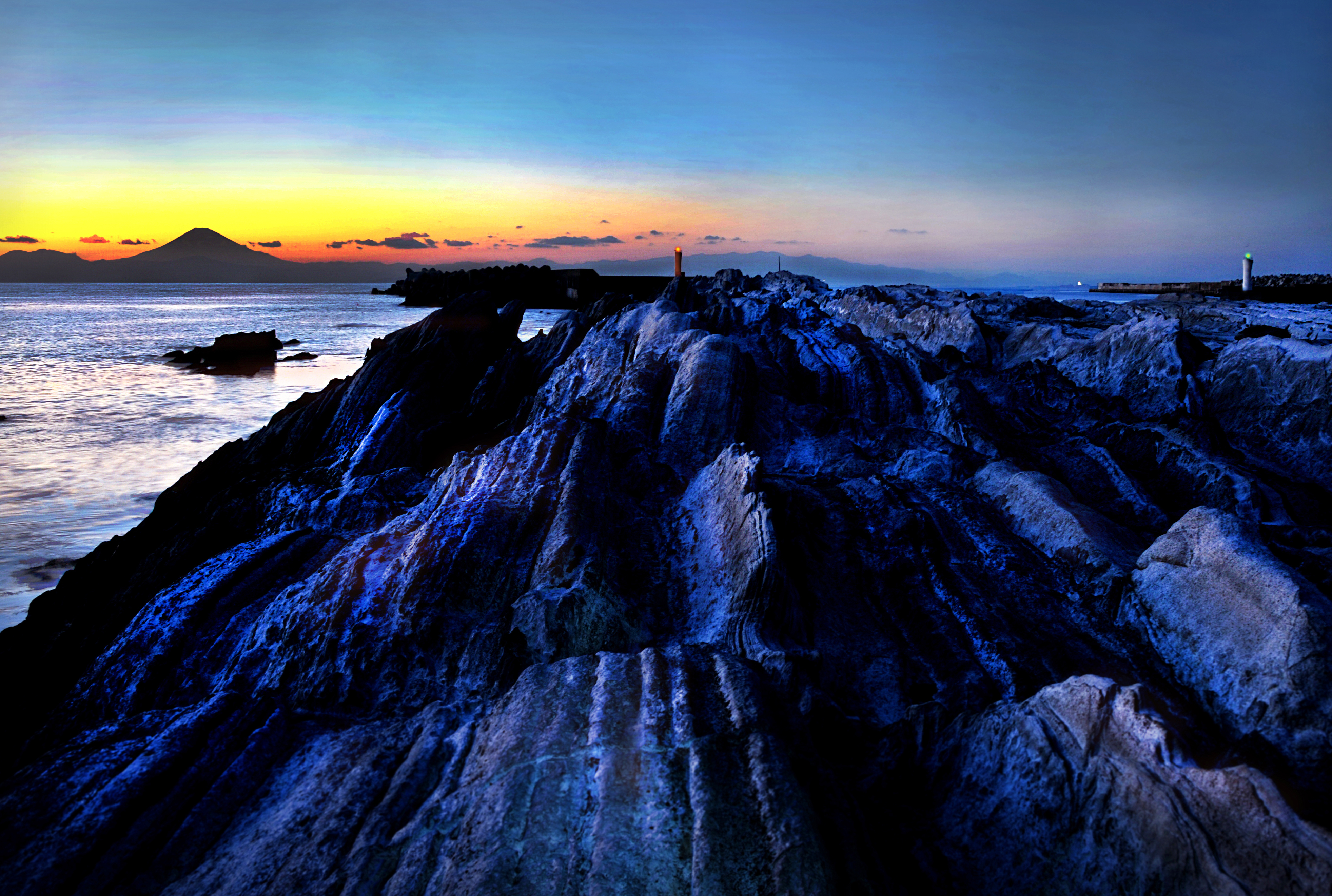 険しい荒磯に、遠く優しい富士の姿を配し、切り取ってみました。