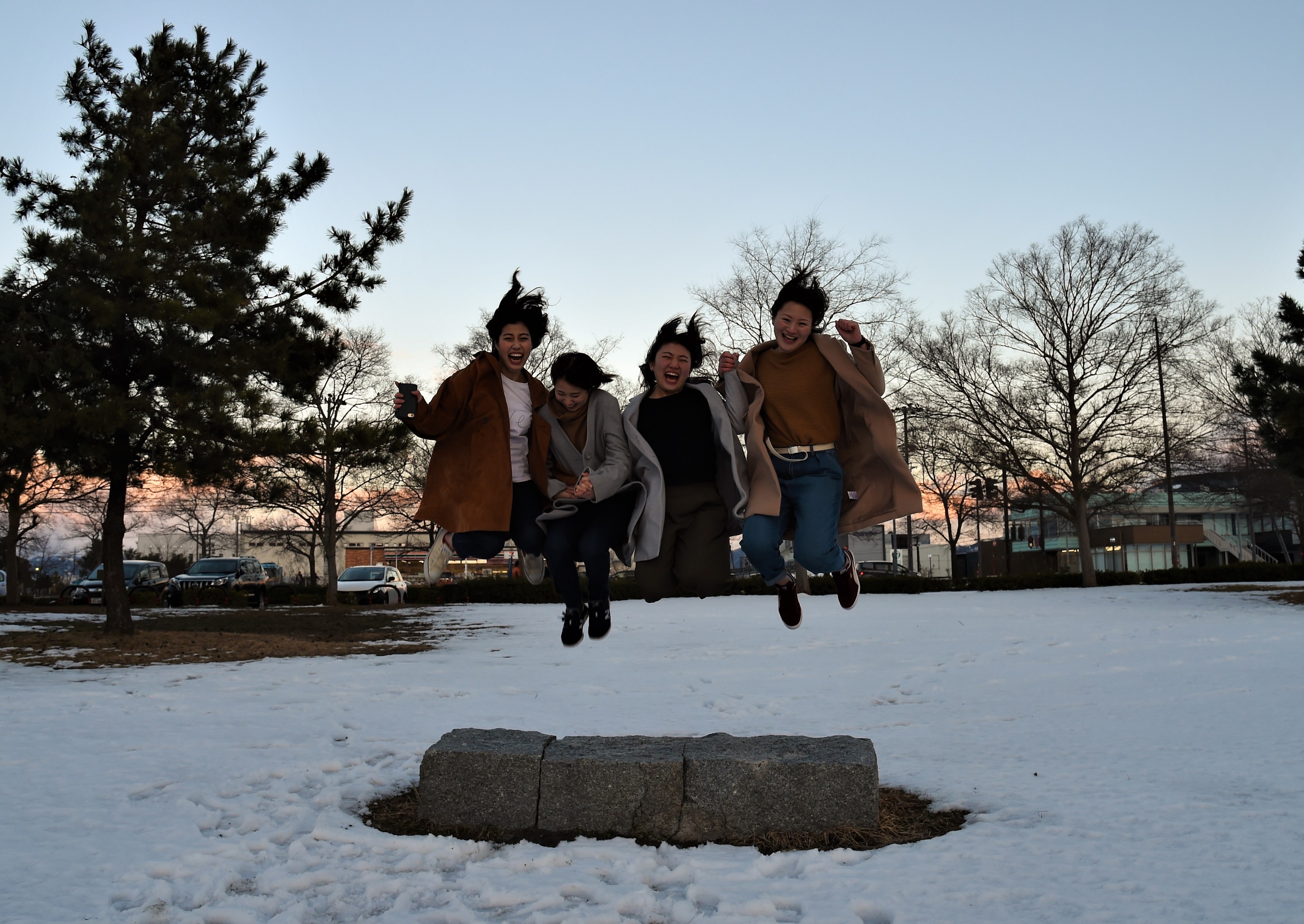 京都から来ていた、女の子四人。寒さに負けない、元気なジャンプ