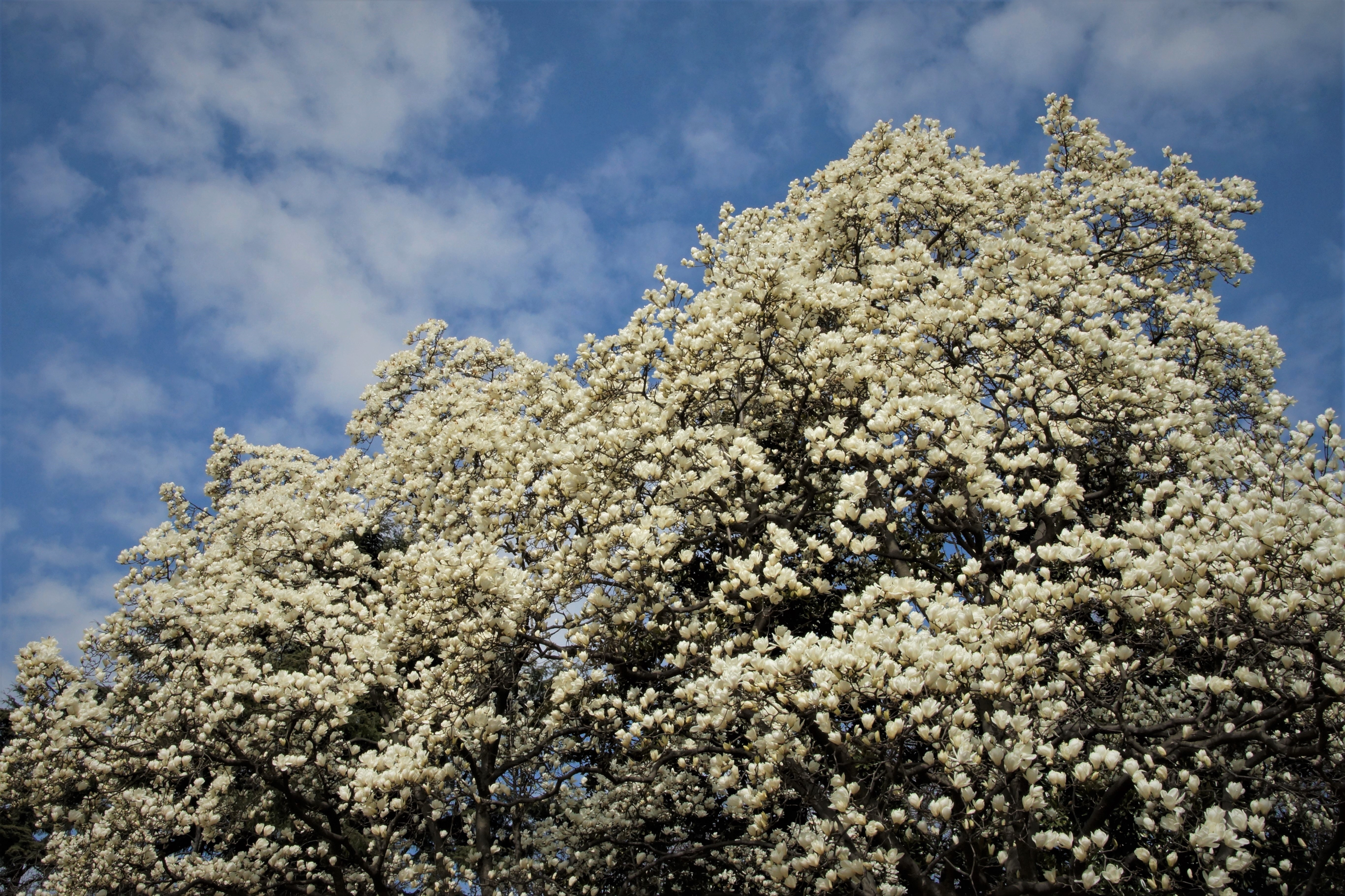 新宿御苑にあるの木蓮の大樹です。今が盛りと咲いていました。