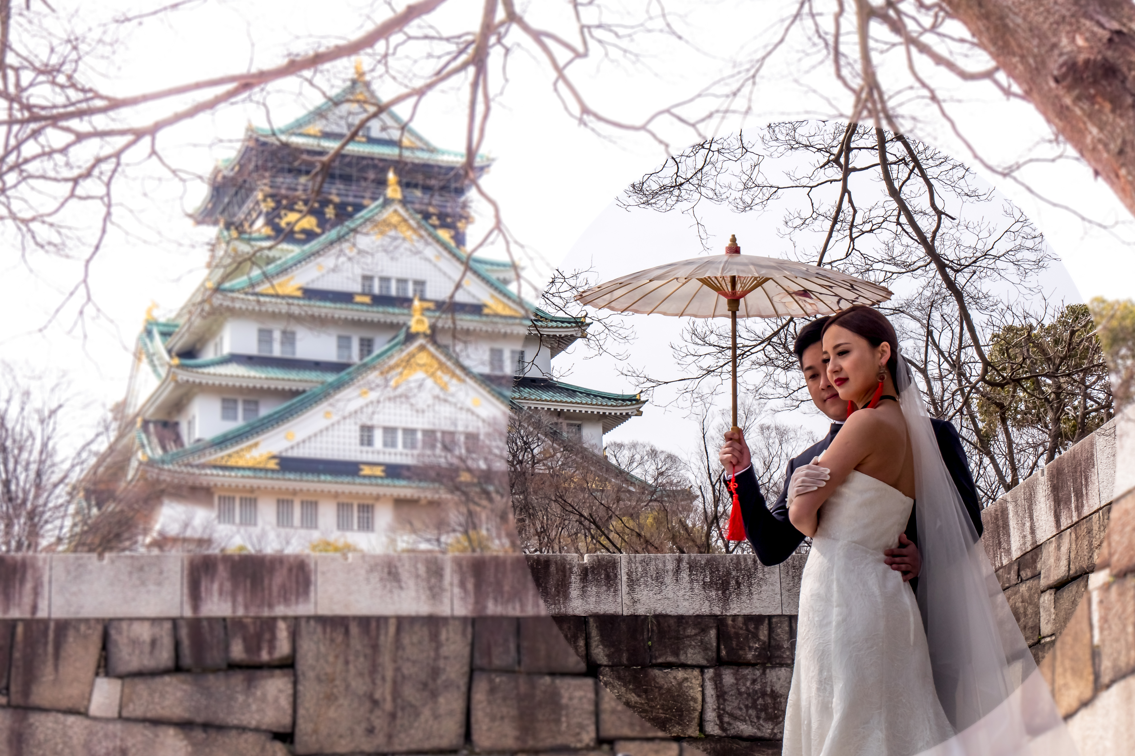 大阪城写真撮影会時、婚礼写真撮影中のカップルを横撮。(#^.^#)