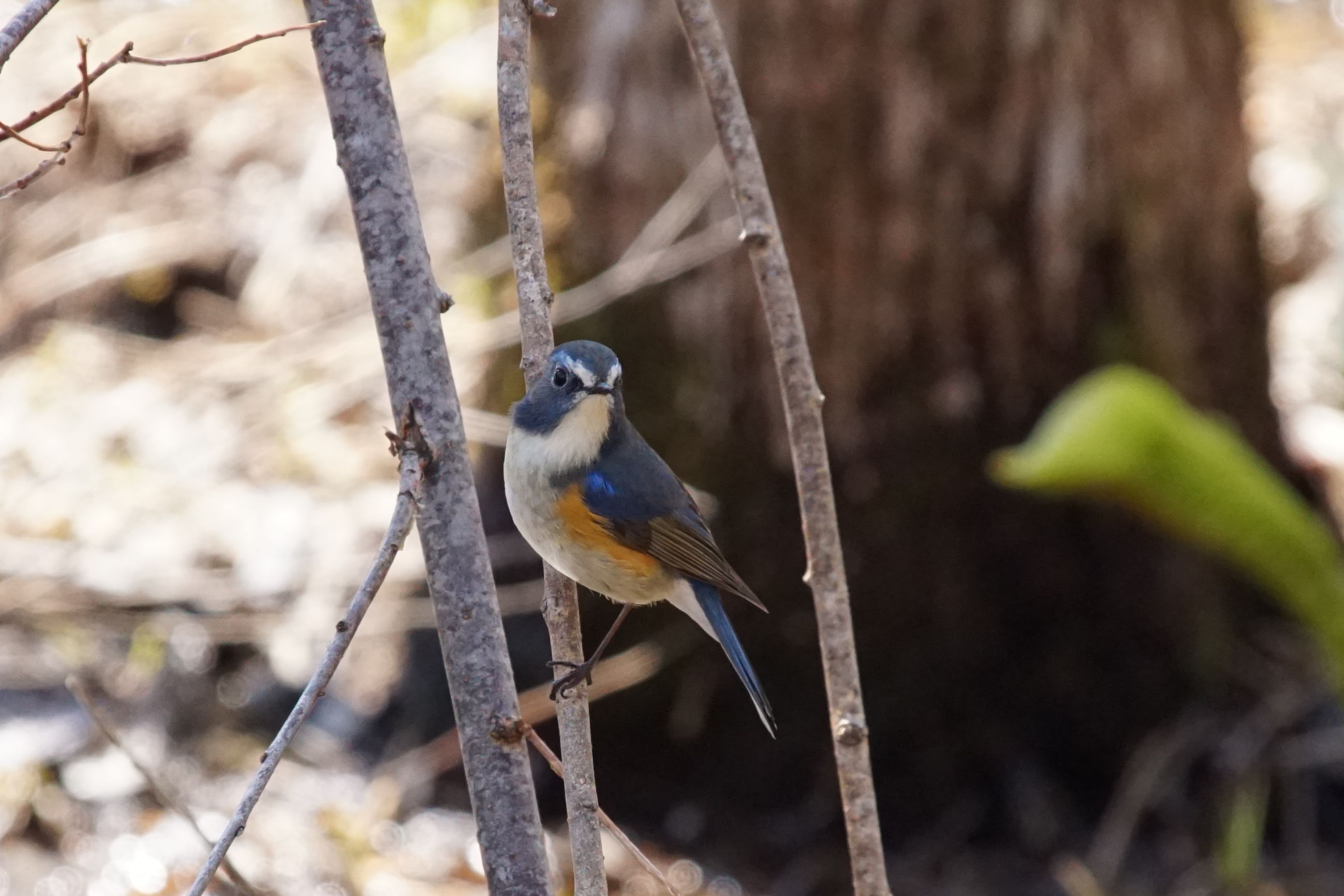 春の湿原のルリビタキ
