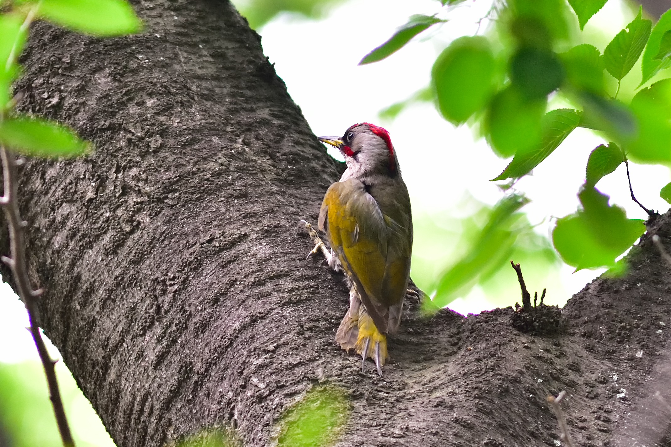 近所の公園にて久し振りにアオゲラ君が姿を見せてくれました。