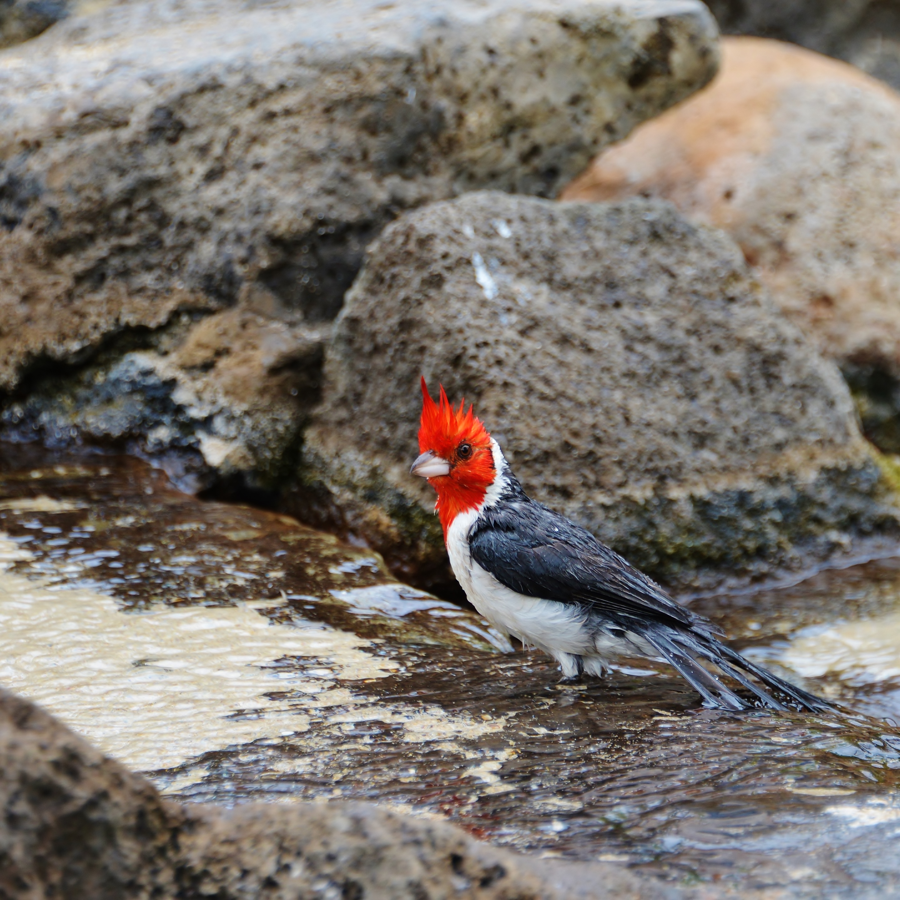 いかにもハワイっぽく感じる鳥で 赤い頭が可愛いです!