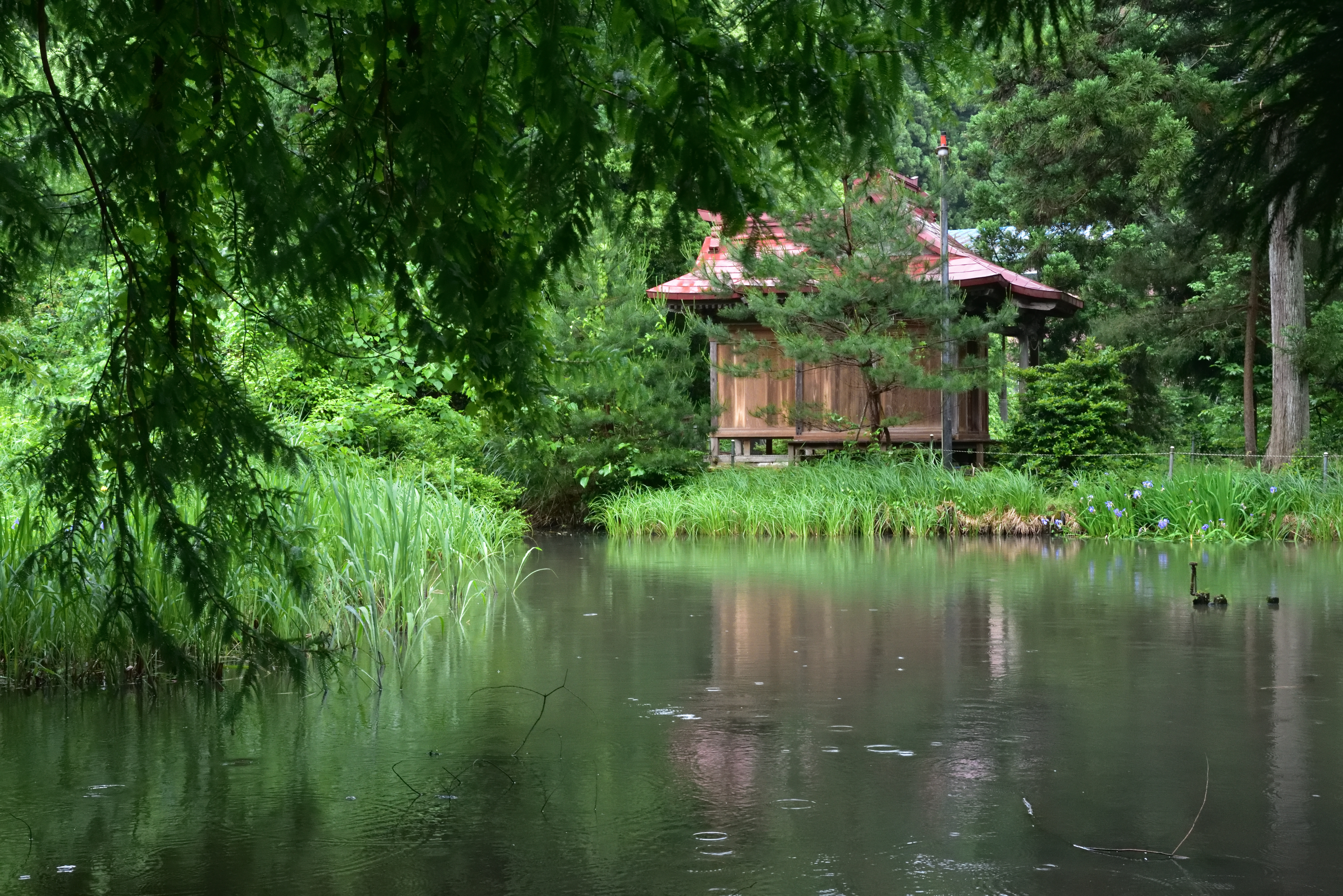 雨上がりで新緑が鮮やかに湖面に映し出され、とても美しい光景でした。