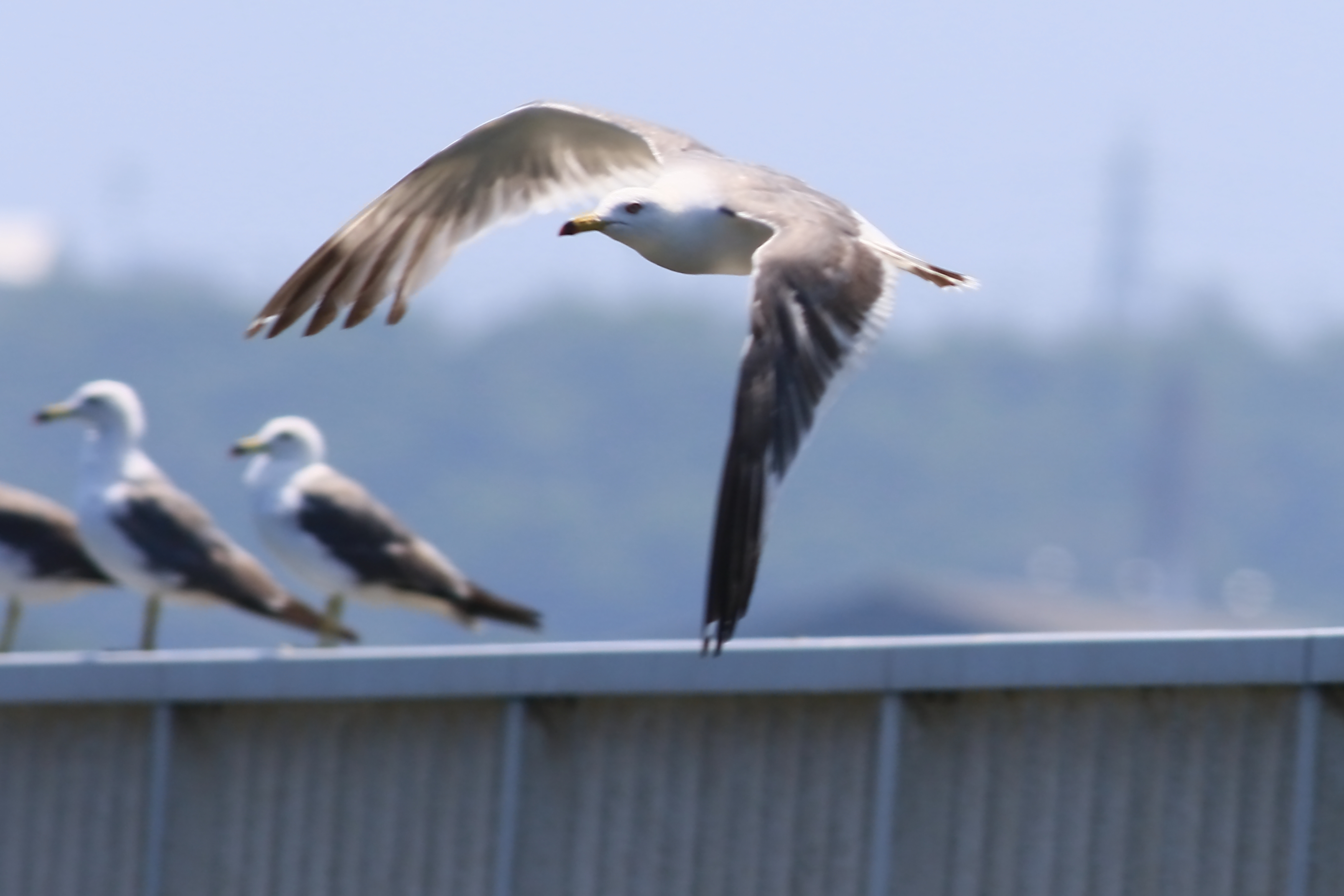 ウミネコ(体長45㎝)は先に投稿の「悠々とセグロカモメ」と似ていますが、こちらは足も嘴も