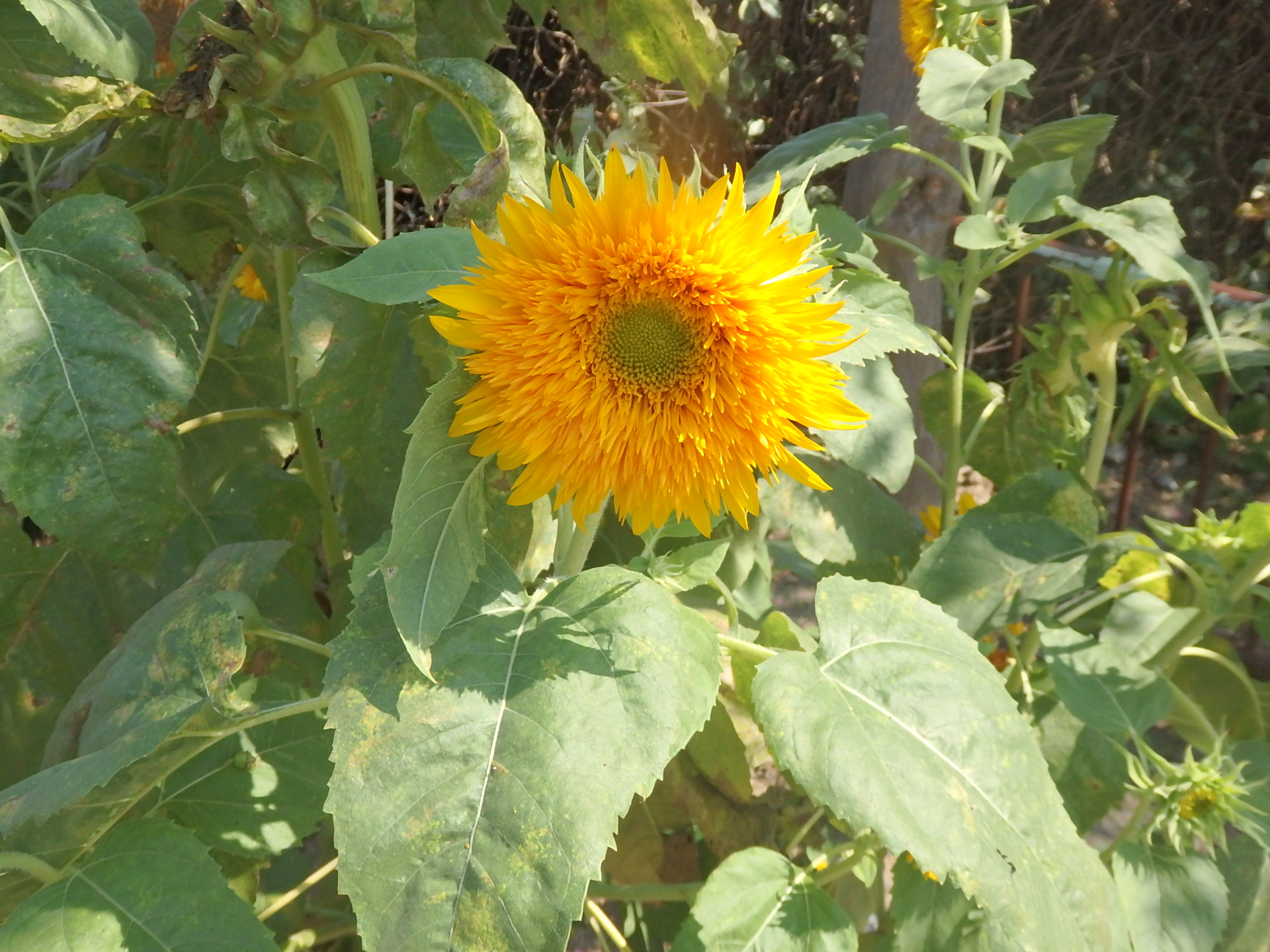 このひまわりの花は小ぶりなようですが、ひまわりらしい輝く色をしています。