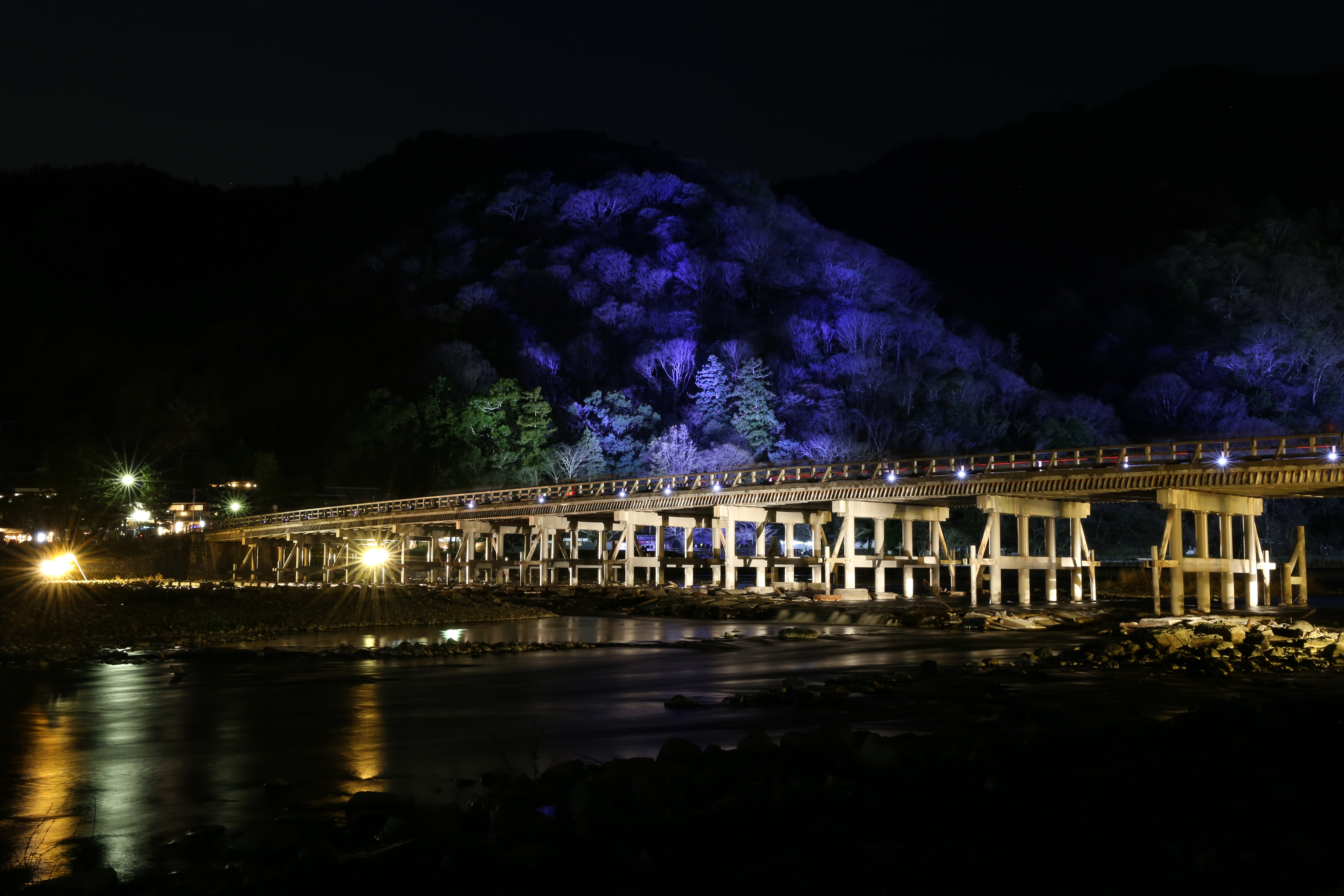 京都渡月橋のライトアップです。