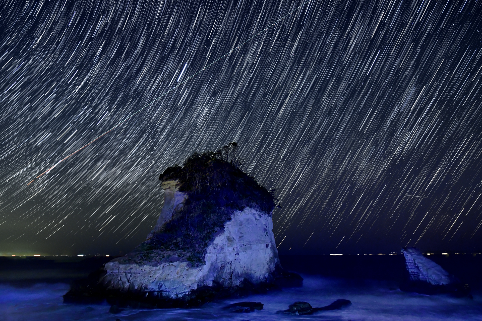 20秒のシャッターで連続撮影した46枚を比較明コンポジット。