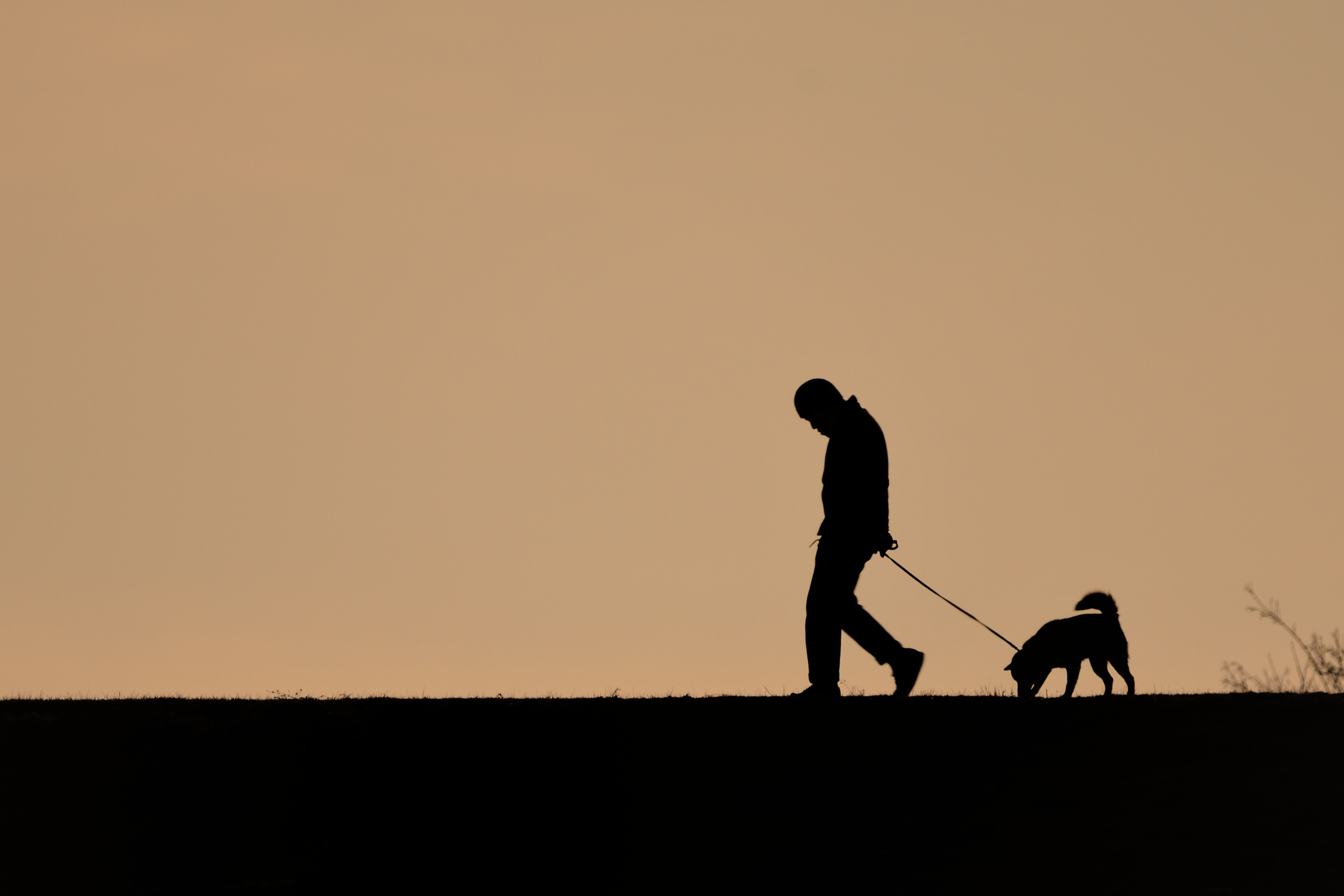 ワンコと飼い主さんを逆光シルエットでパシャリ。