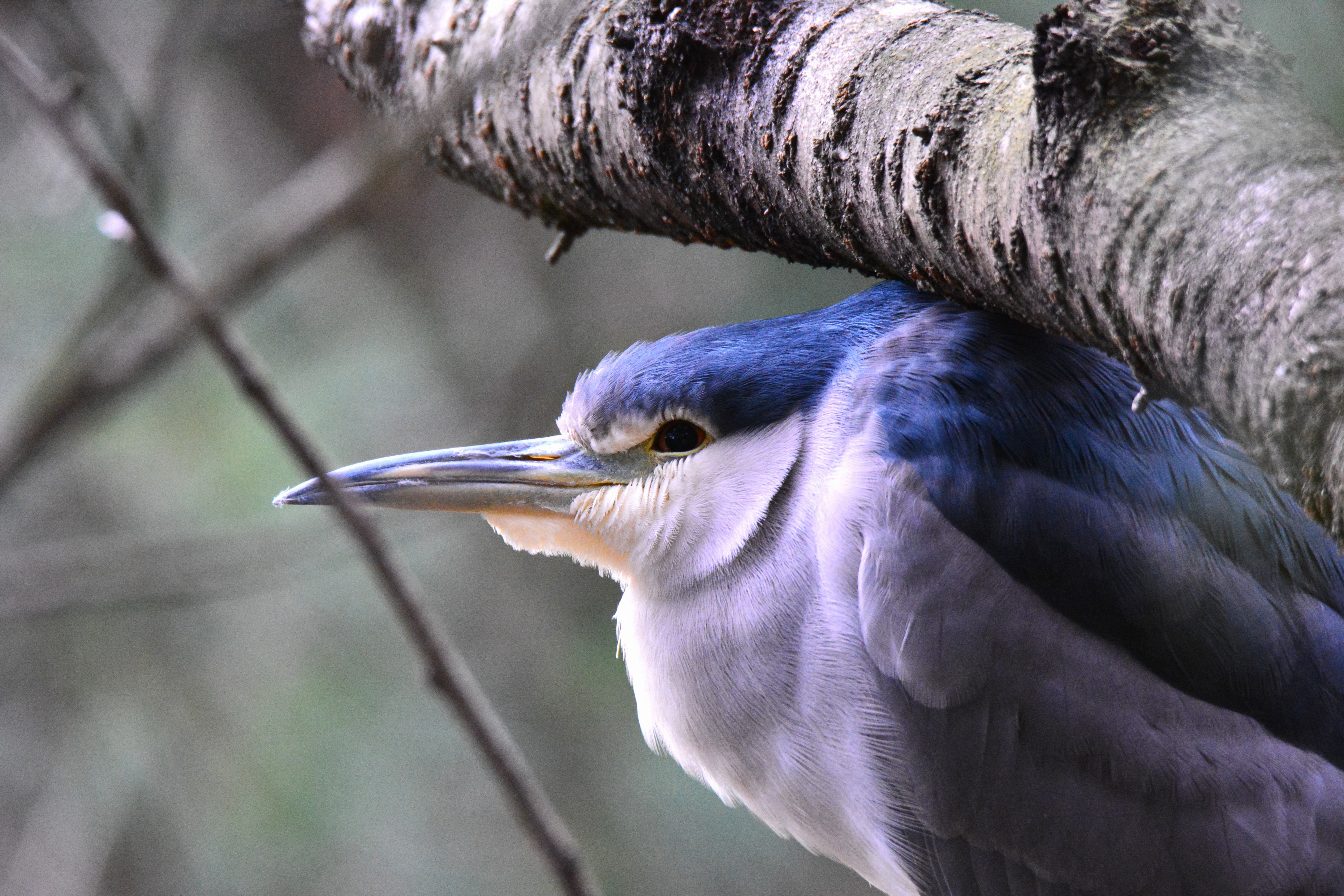 ゴイサギに大接近・・・まつ毛があるように見えます。