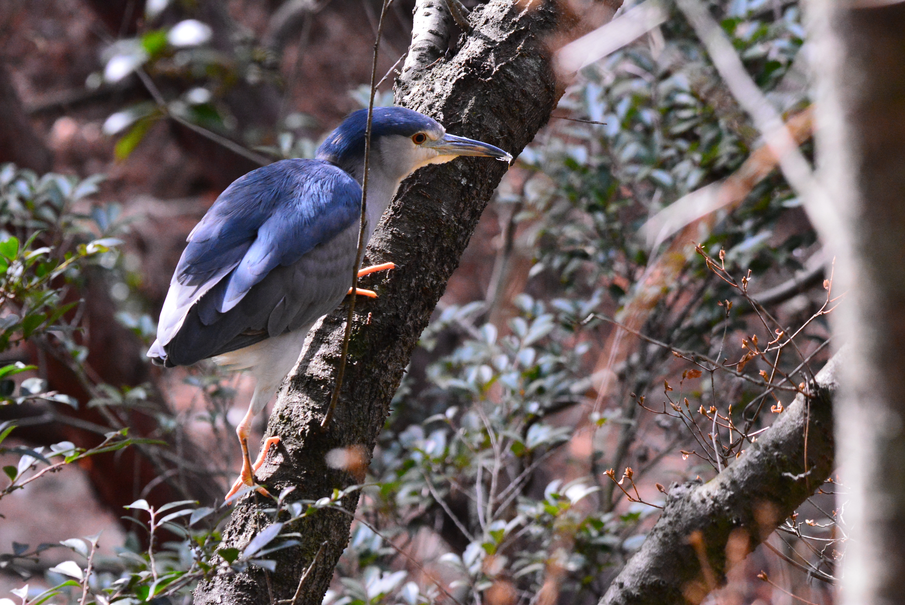 獲物をみつけたのか一点を見つめながら木の上を抜き足差し足で。