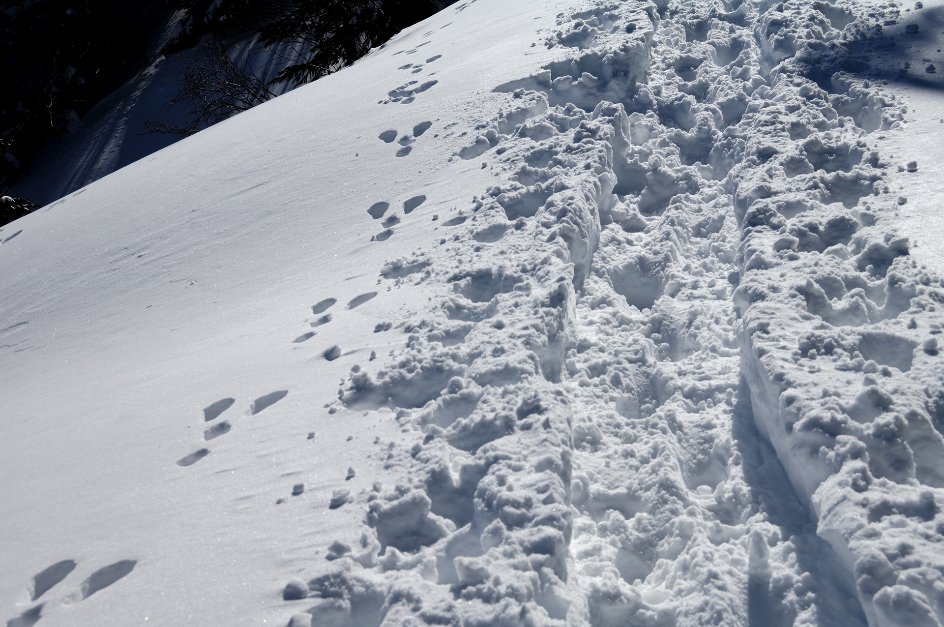 足跡の綺麗さから言うと、ウサギの勝ちだな。