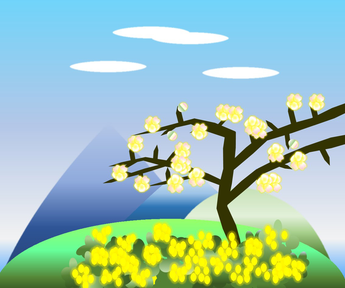 春がいよいよやってきました。梅と菜の花がこの月の花ですね。初めて、Powerpointで風景を描きました。まだまだ、こまかいものを描くことはまずいです。