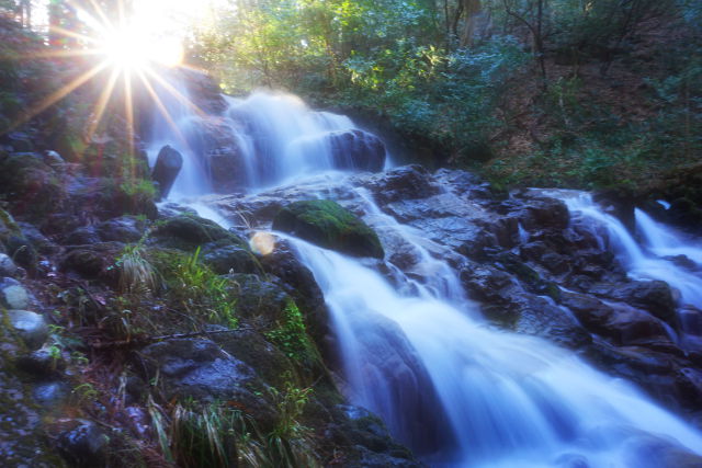朝日昇る、白糸の滝