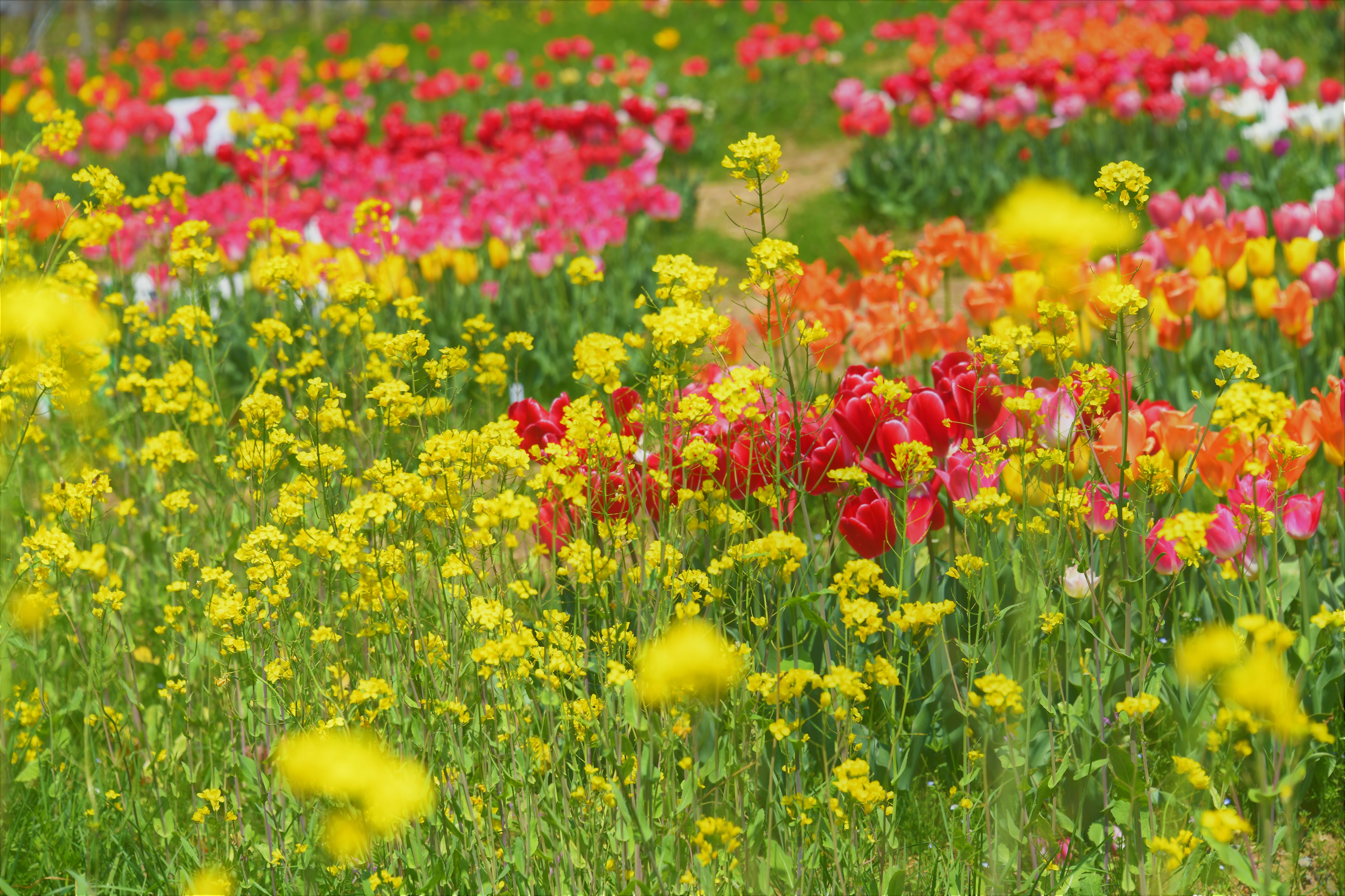 菜の花とチューリップの競演。