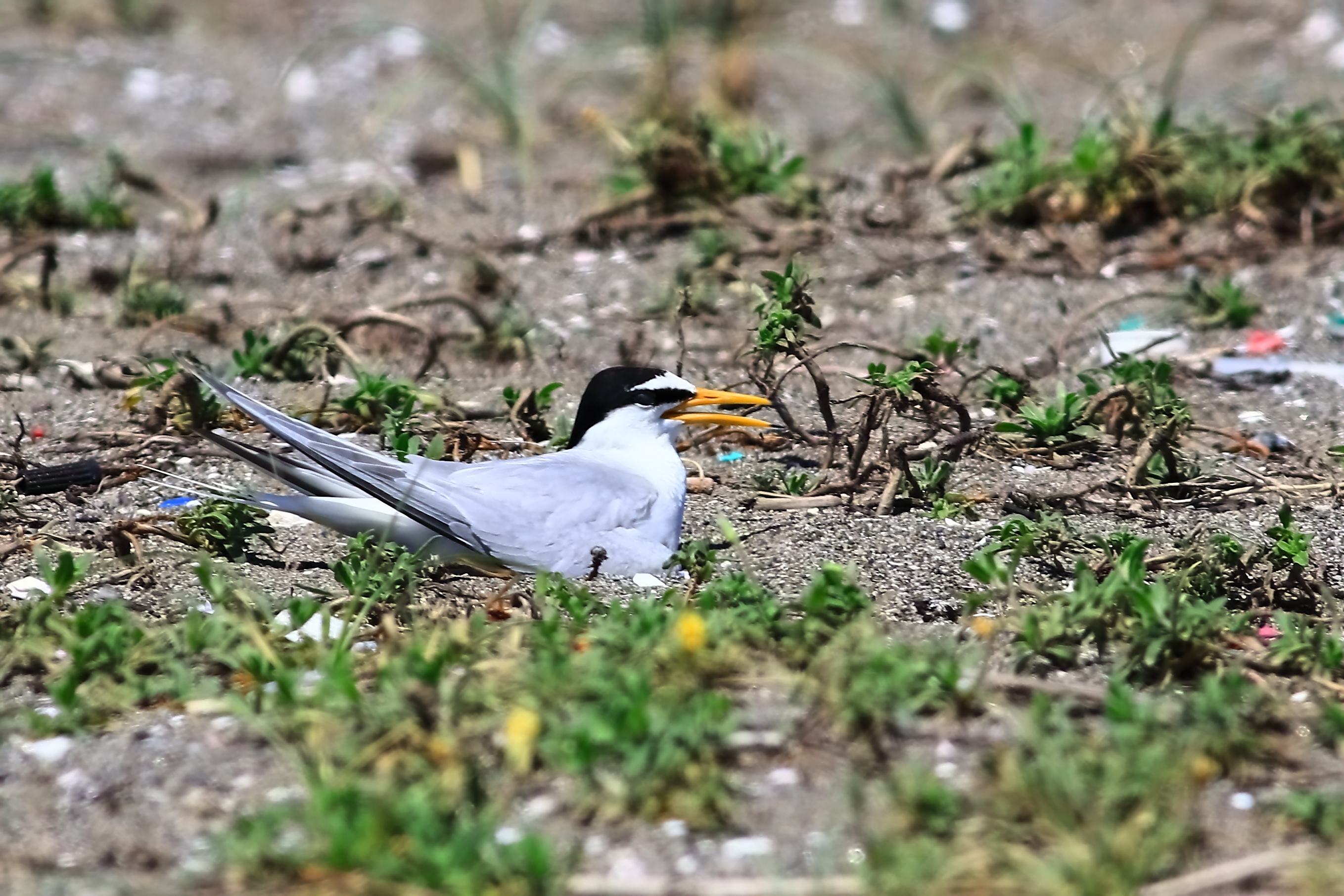 【コアジサシの抱卵:4連作の1】 コアジサシは国内で繁殖する数少ない絶滅危惧種の渡り鳥ですが、環境省が14年2月に発表した30頁にわたる調査資料によると雛が育つ割合は10%以下です。近くに餌があることが絶対条件で営巣地は主に河川や海岸でコロニーを作り集団繁殖をします。通常卵は1個から4個。巣は砂地などに小石や貝殻を寄せた簡単なものです。ここ東京湾の海岸では8年ぶりの営巣です。果たしてヒナ誕生は成功するでしょうか。