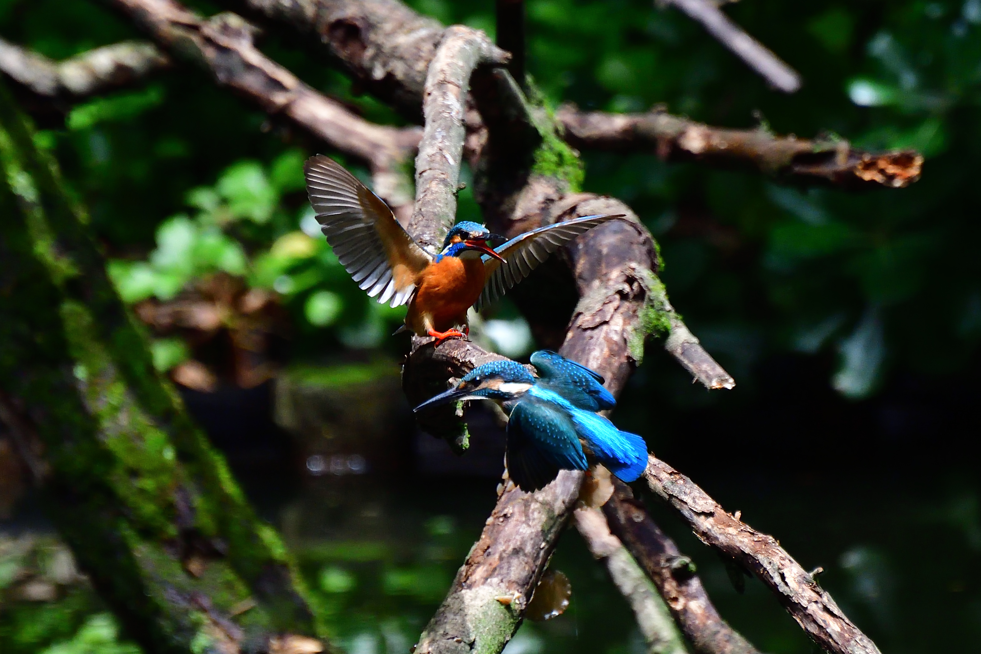 奥のカワセミ父さんが手前の子供を威嚇していたので、もう親の元を離れなさいと言う事でしょうね。