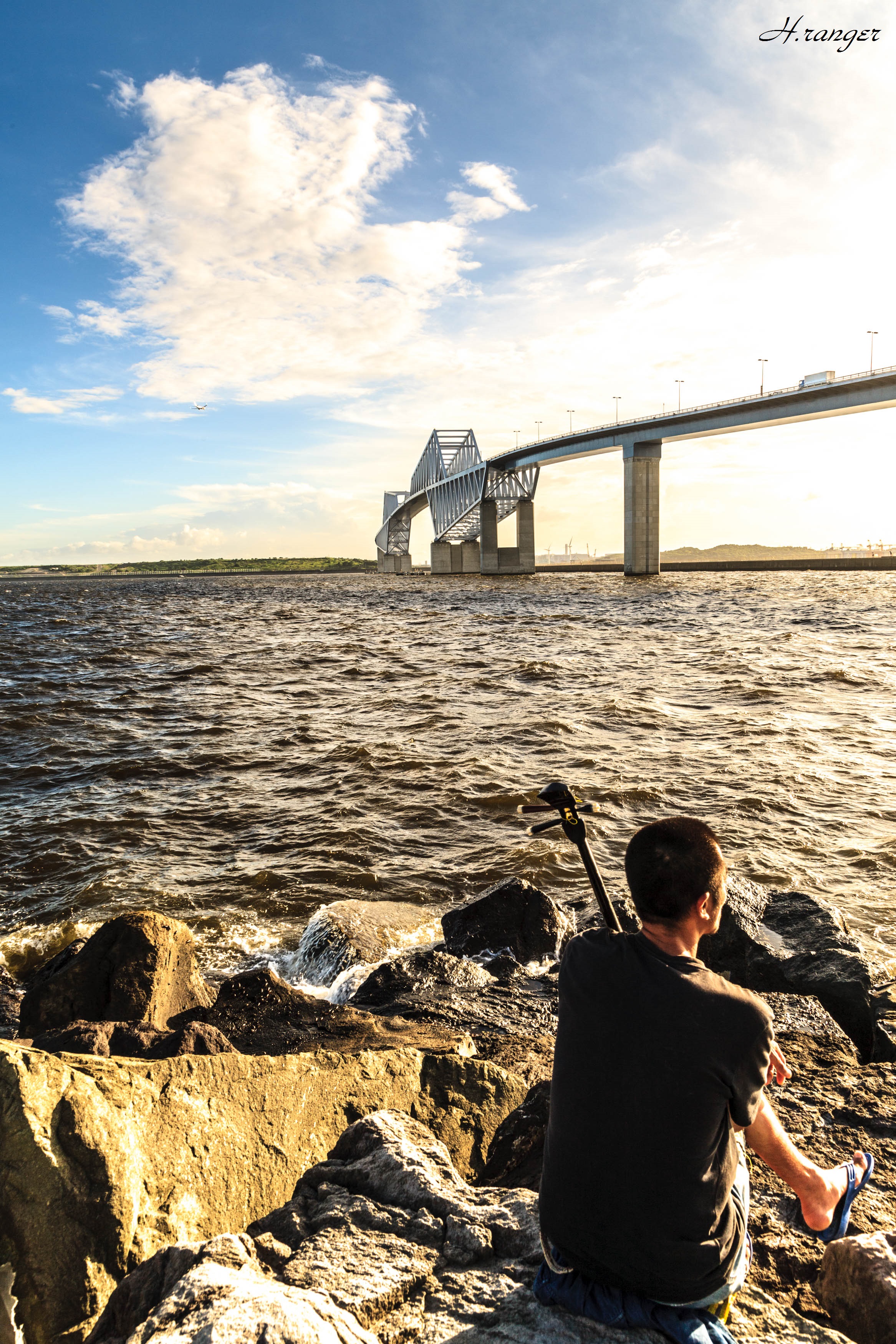強風の東京ゲートブリッチ下で聴く三線の音、夢か現実か・・・。