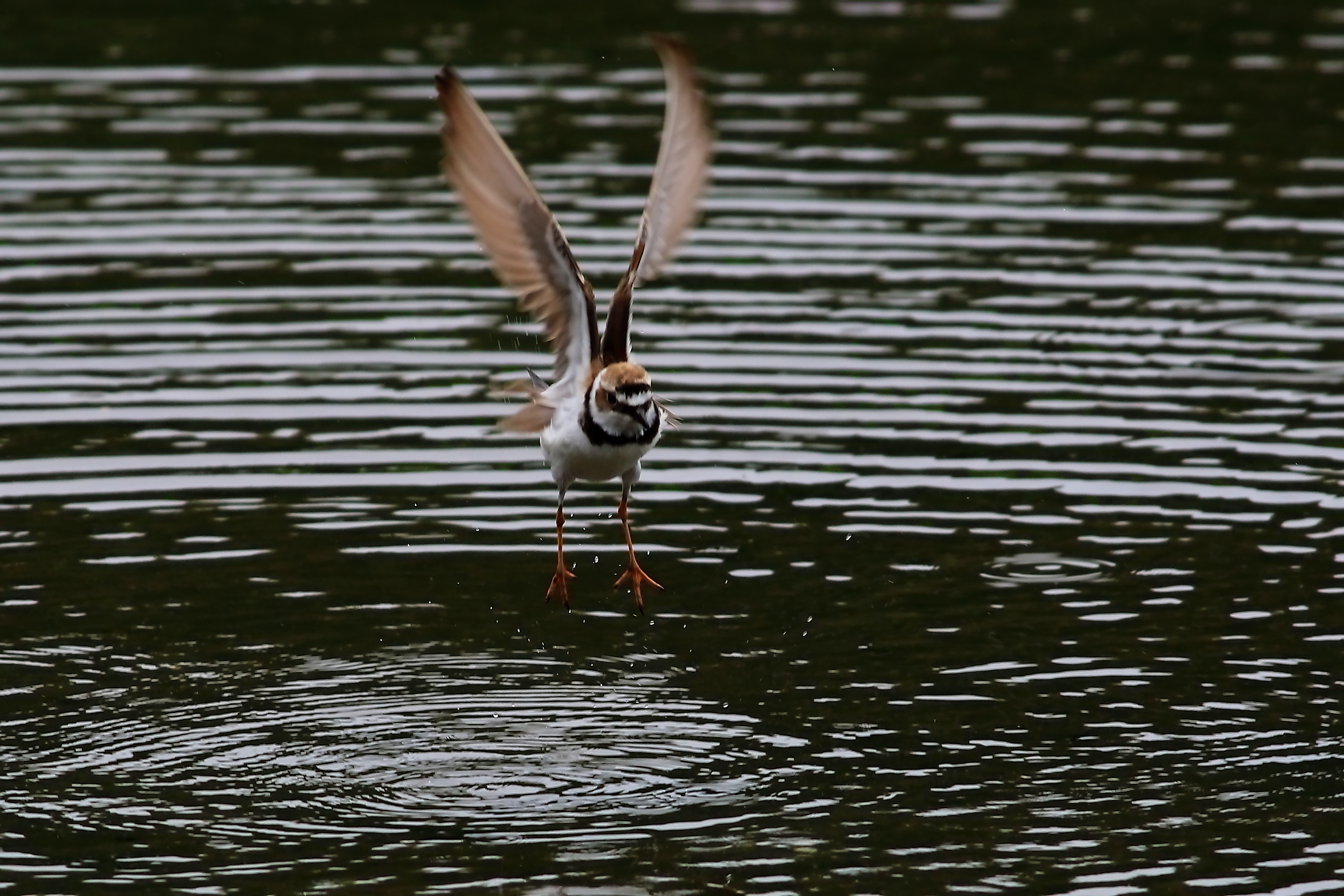 水浴びを終えたコチドリがいきなりこちらに向かって飛び出しました。