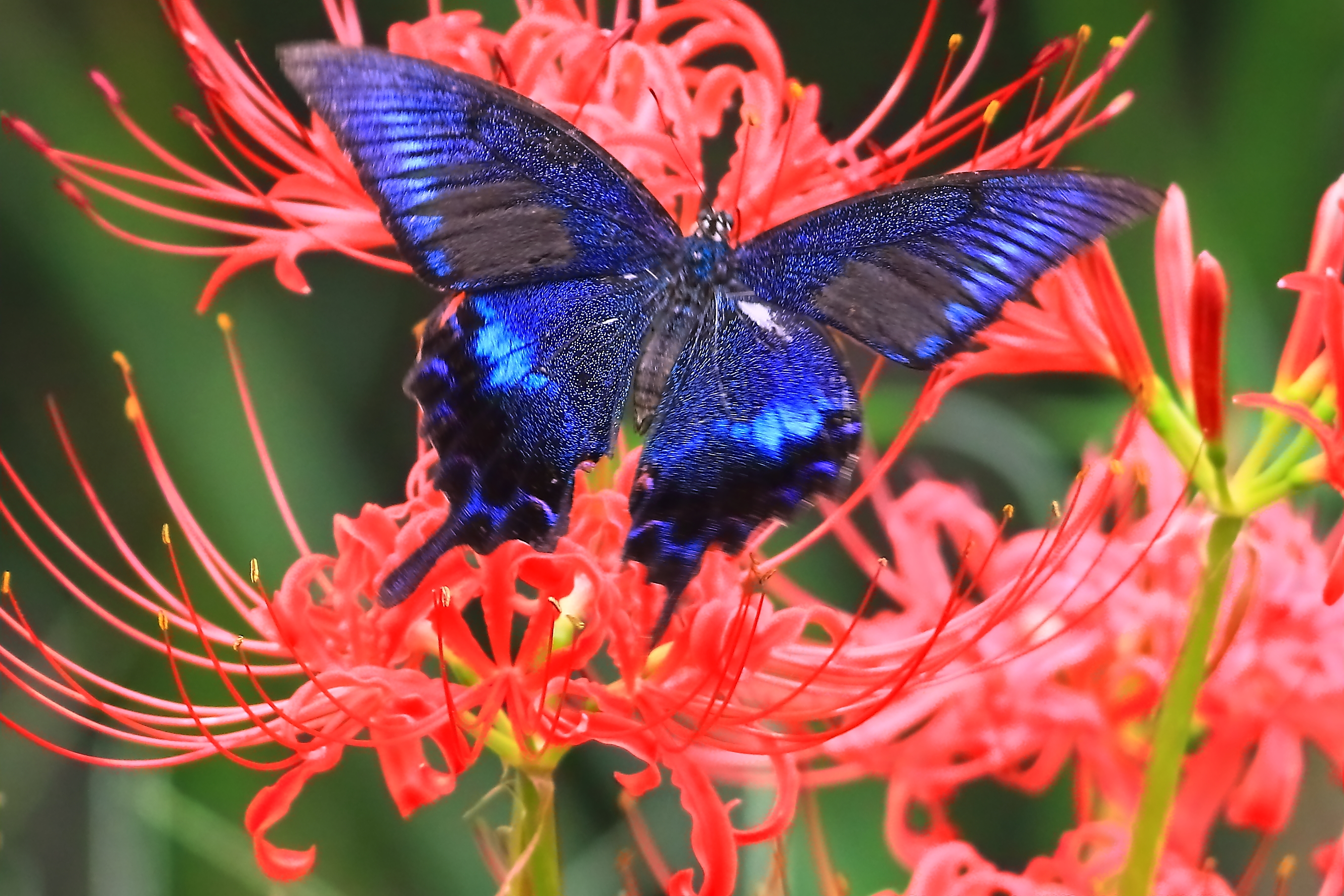 秋の一際目に付く色彩いち早く、眼に浸みます、色彩豊かな蝶とあいまって