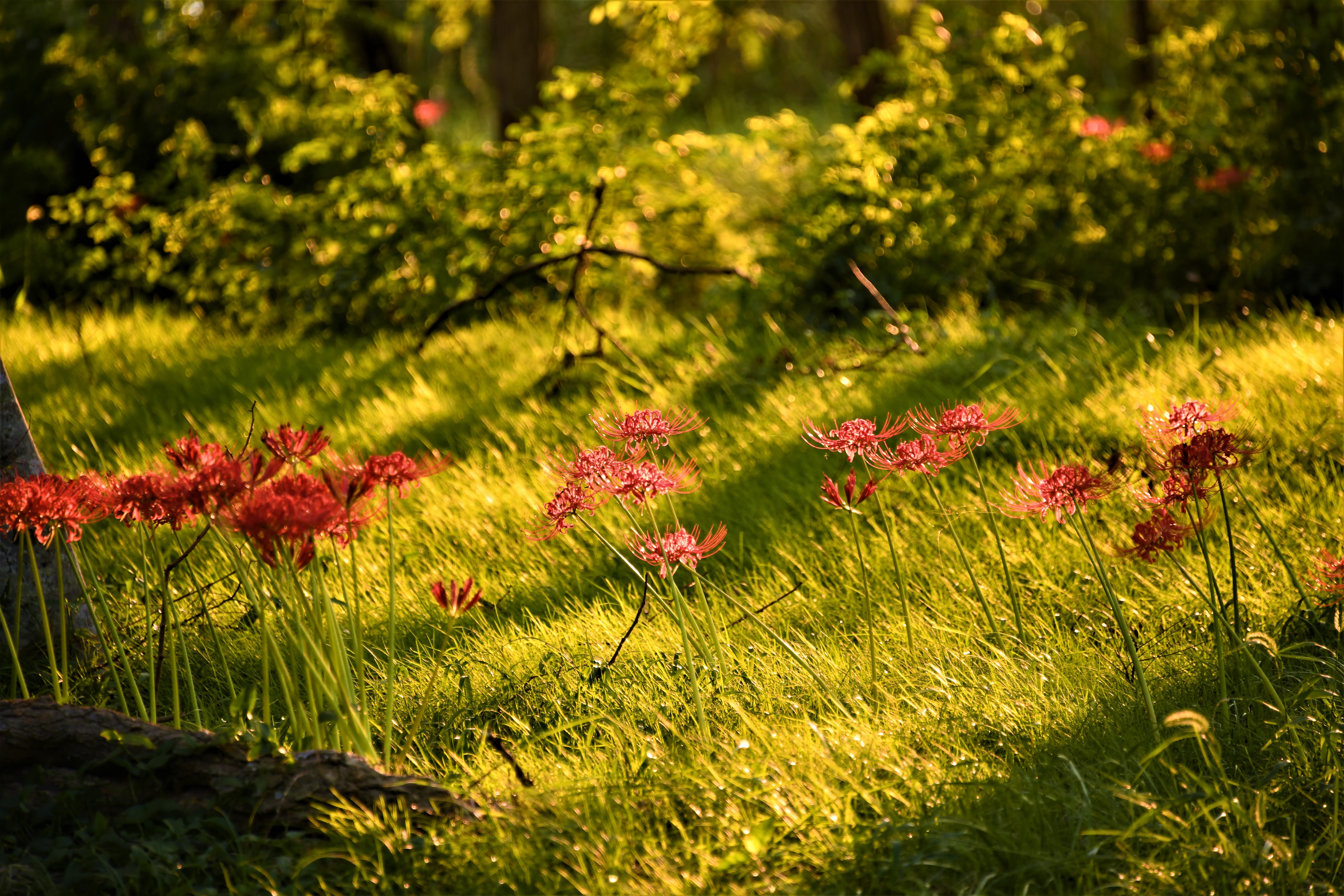 差し込む光の中で、そよぐ彼岸花。