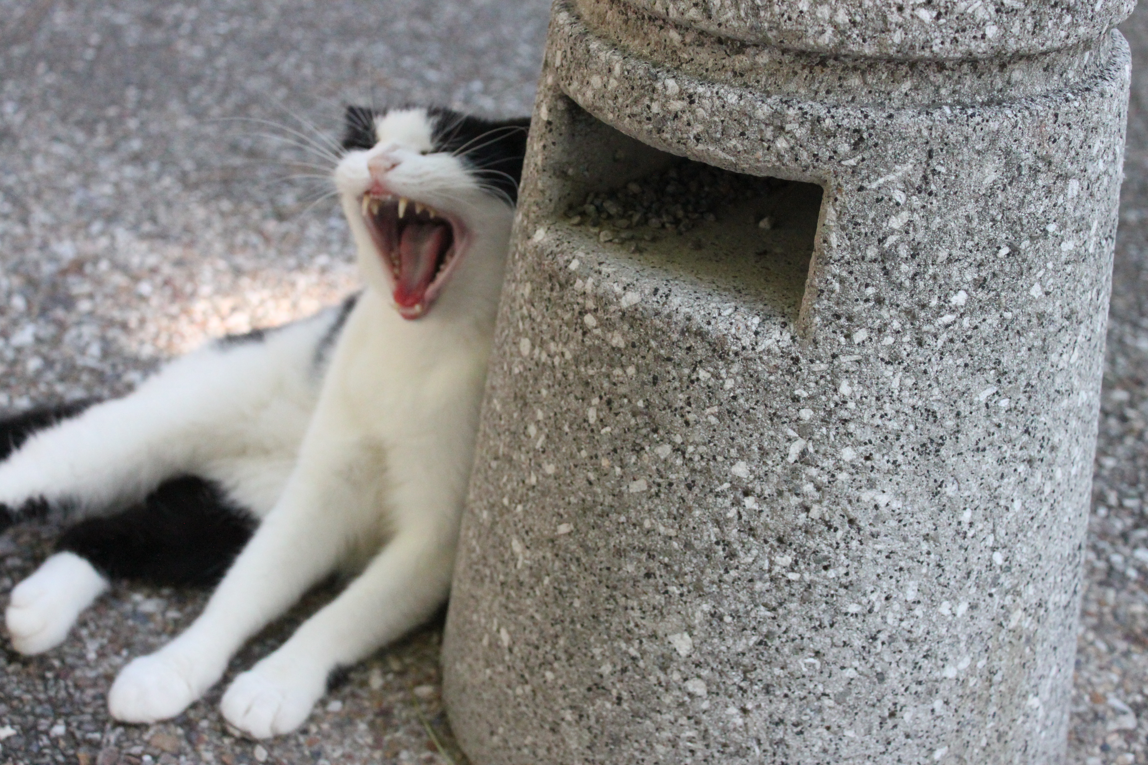 岡崎城で出会った、猫くん。凄く幸せそうにあくびをしていました。THE招き猫!