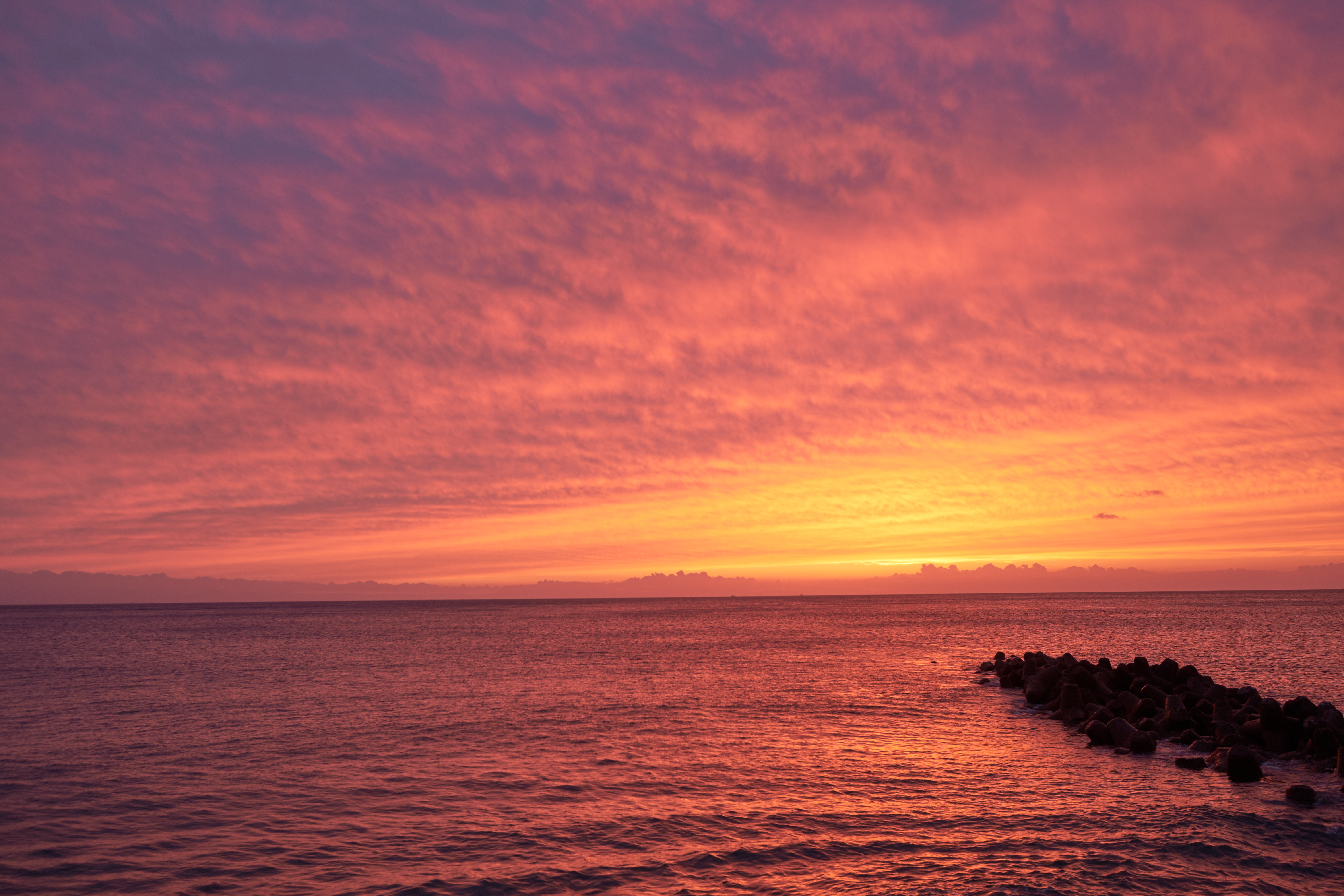 日没後も焼け続け、空も海も長い余韻を楽しませてくれます。