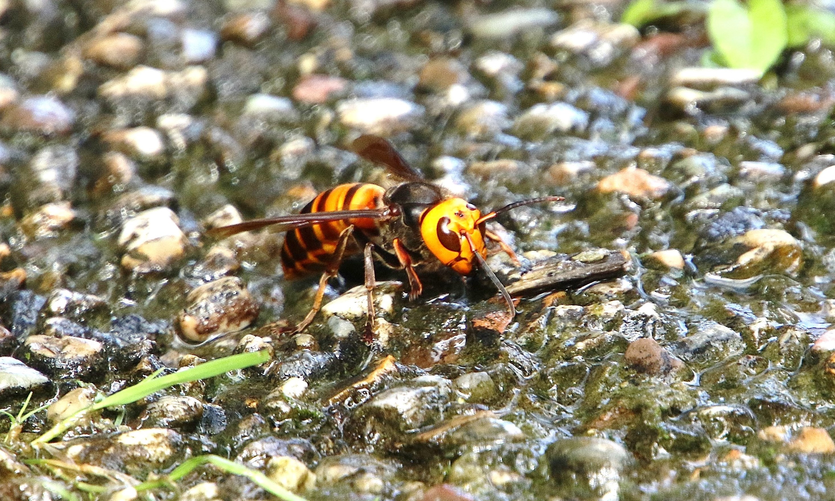 スズメバチの吸水 距離1m弱 さすがにそれ以上は間を縮めれませんでした。