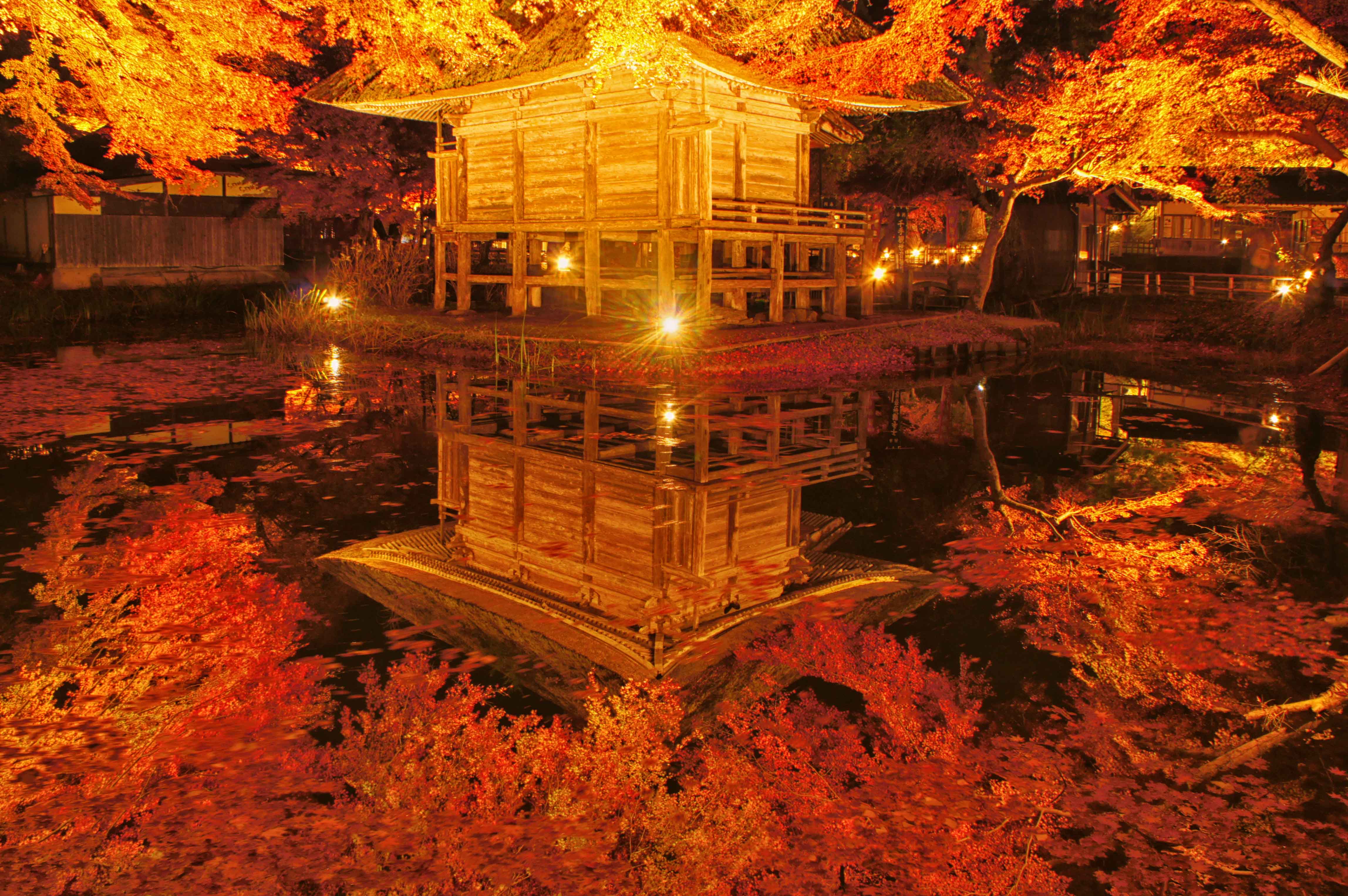 毎度お馴染みのこの場所、この構図。去年より色が良かった分、賑やかにはなりました。関山 中尊寺の弁財天堂。