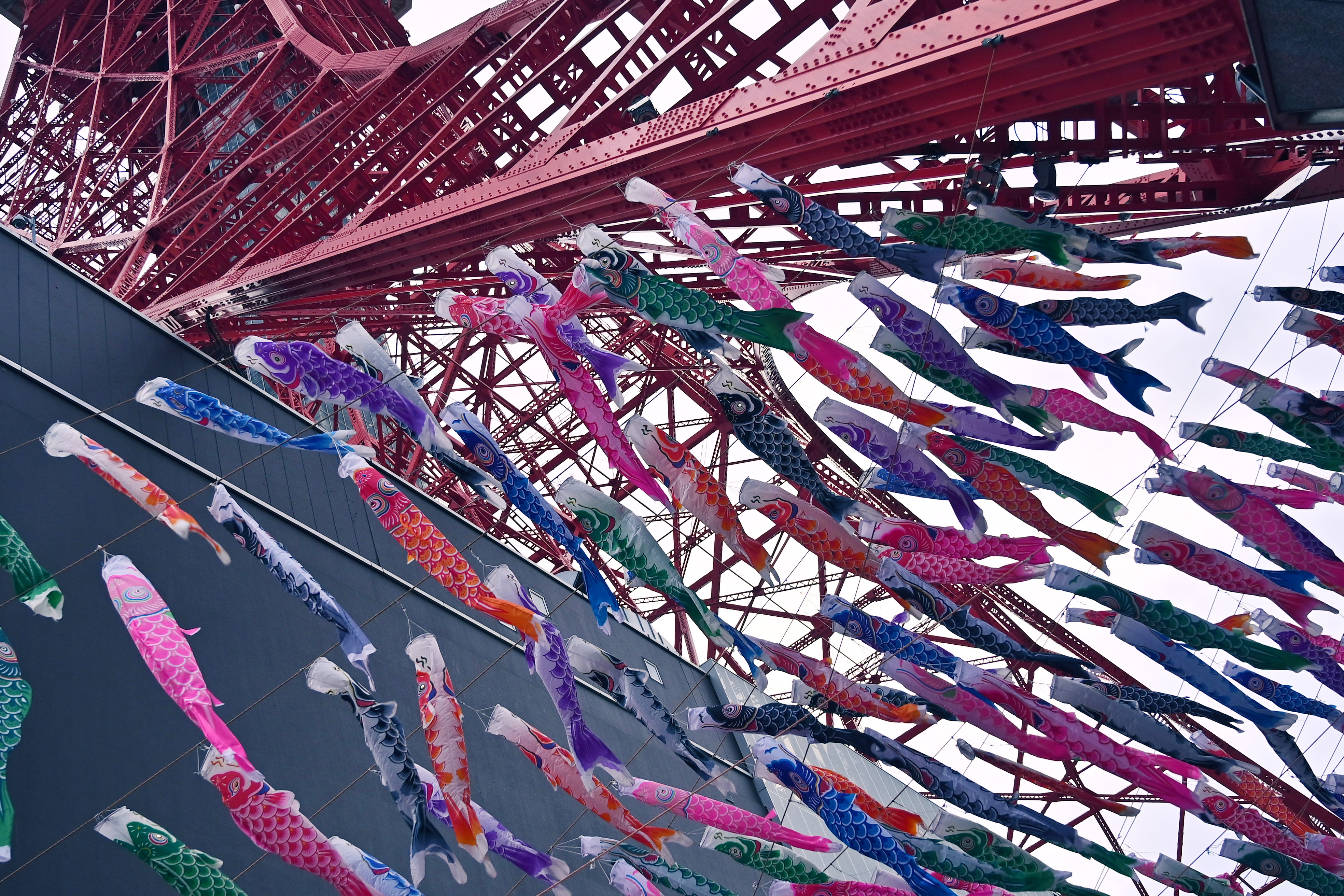 数多く泳ぐ鯉のぼりが小さく見え、ダイナミックに東京タワーを捉えた構図痺れますね。