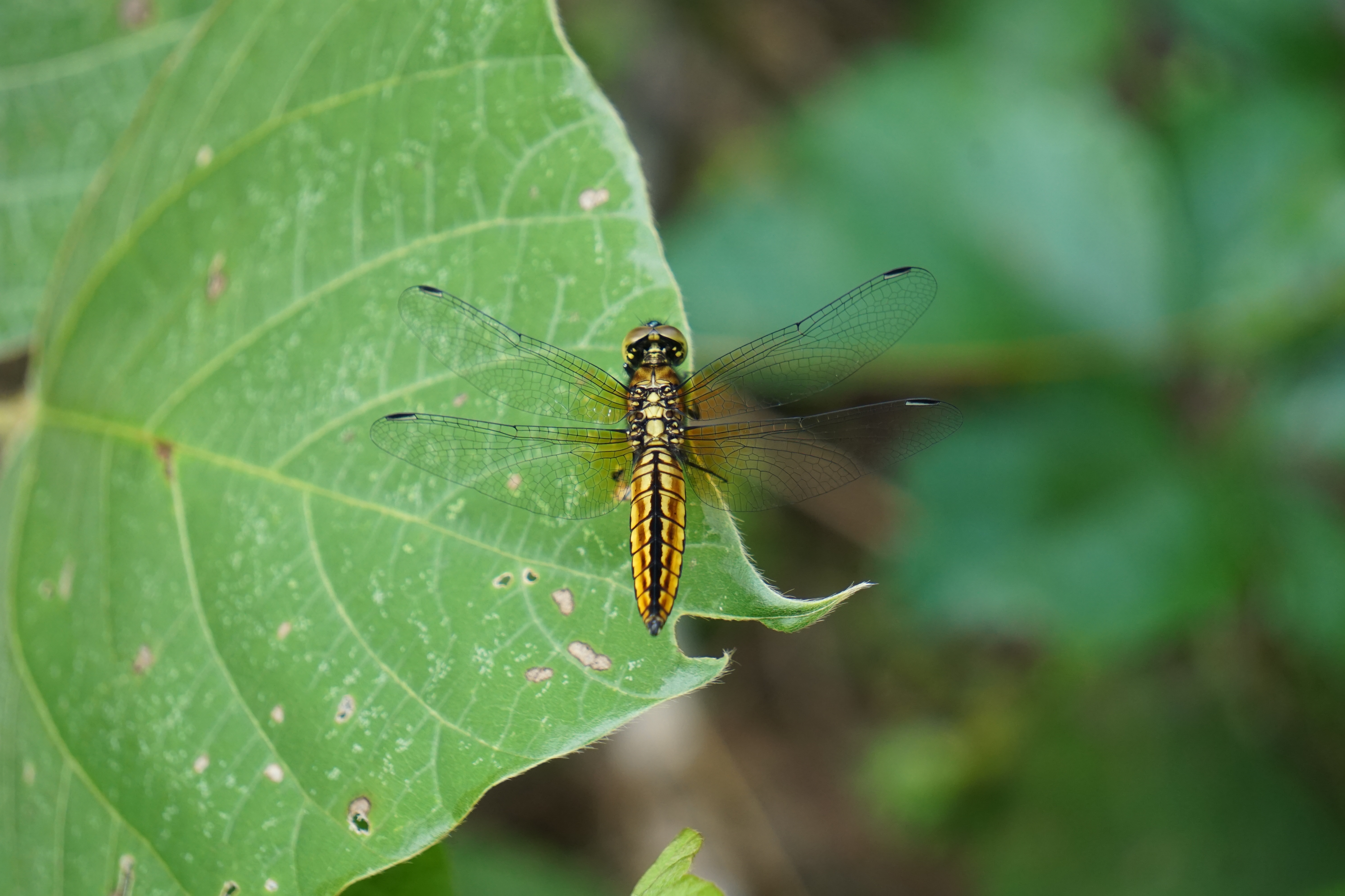中心にハラビロトンボ雌