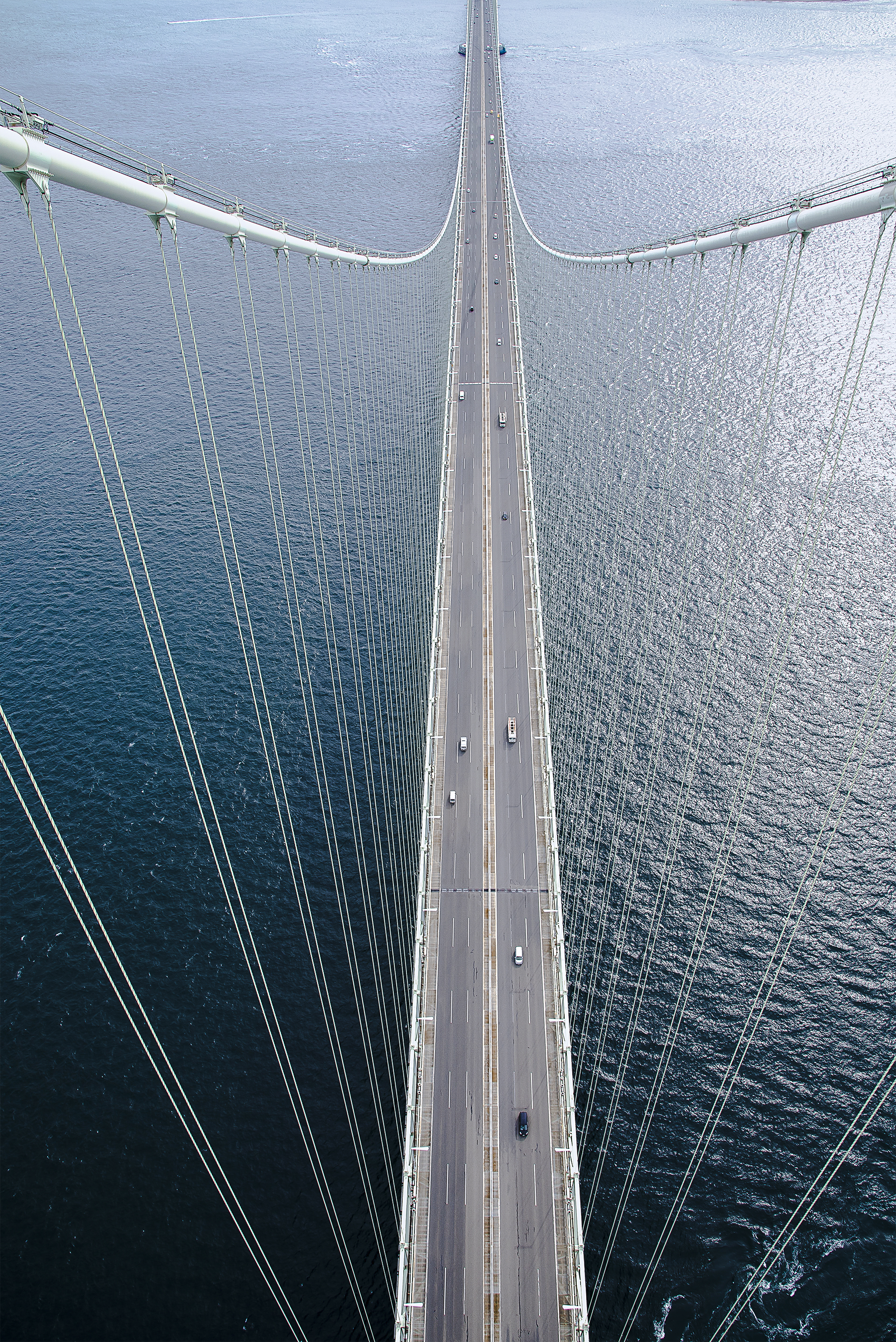 明石海峡大橋塔頂より淡路島方向を見下ろしての光景。