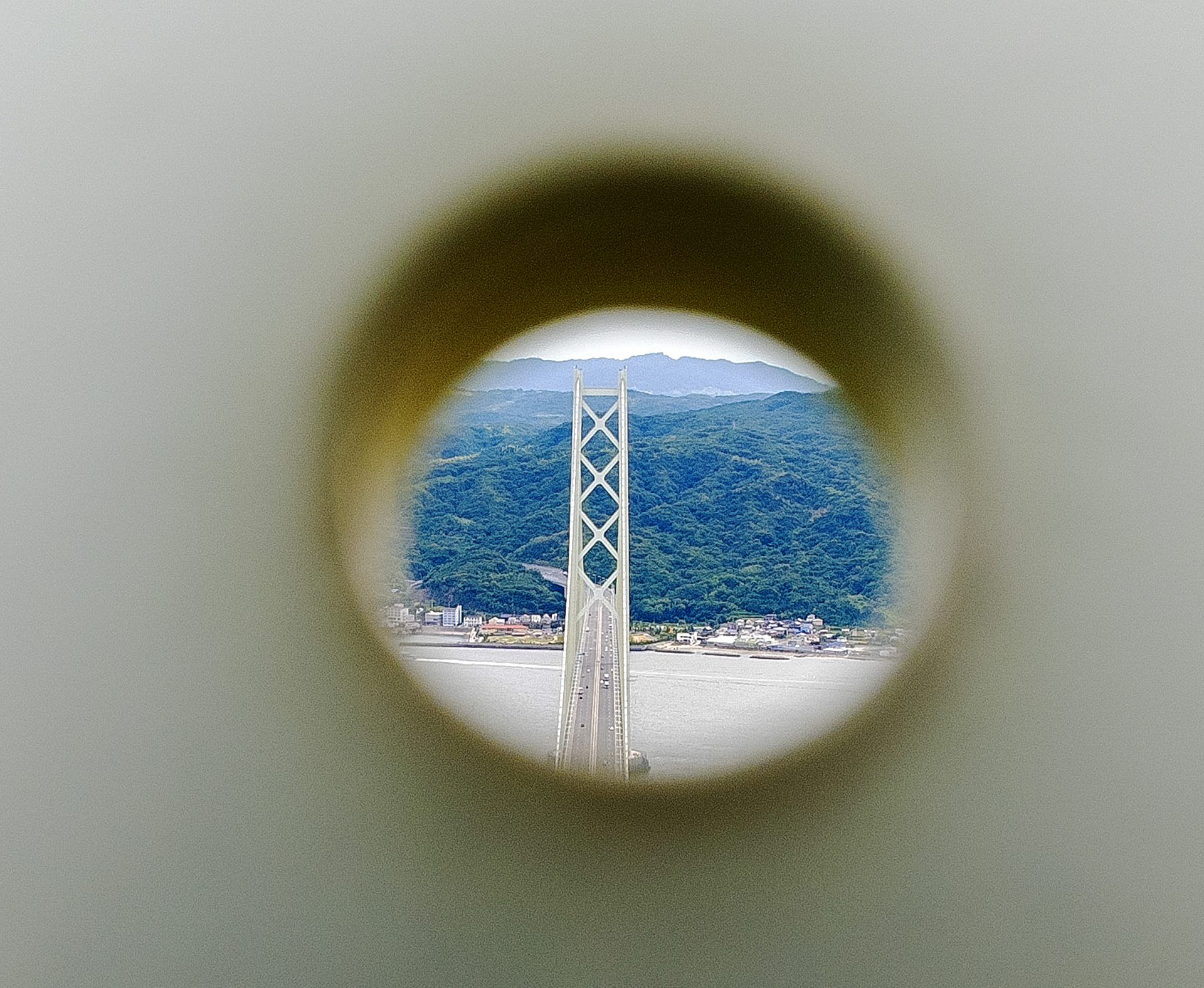 明石海峡大橋、主塔の塔頂に直径10cm程の穴の空いた個所がありました。