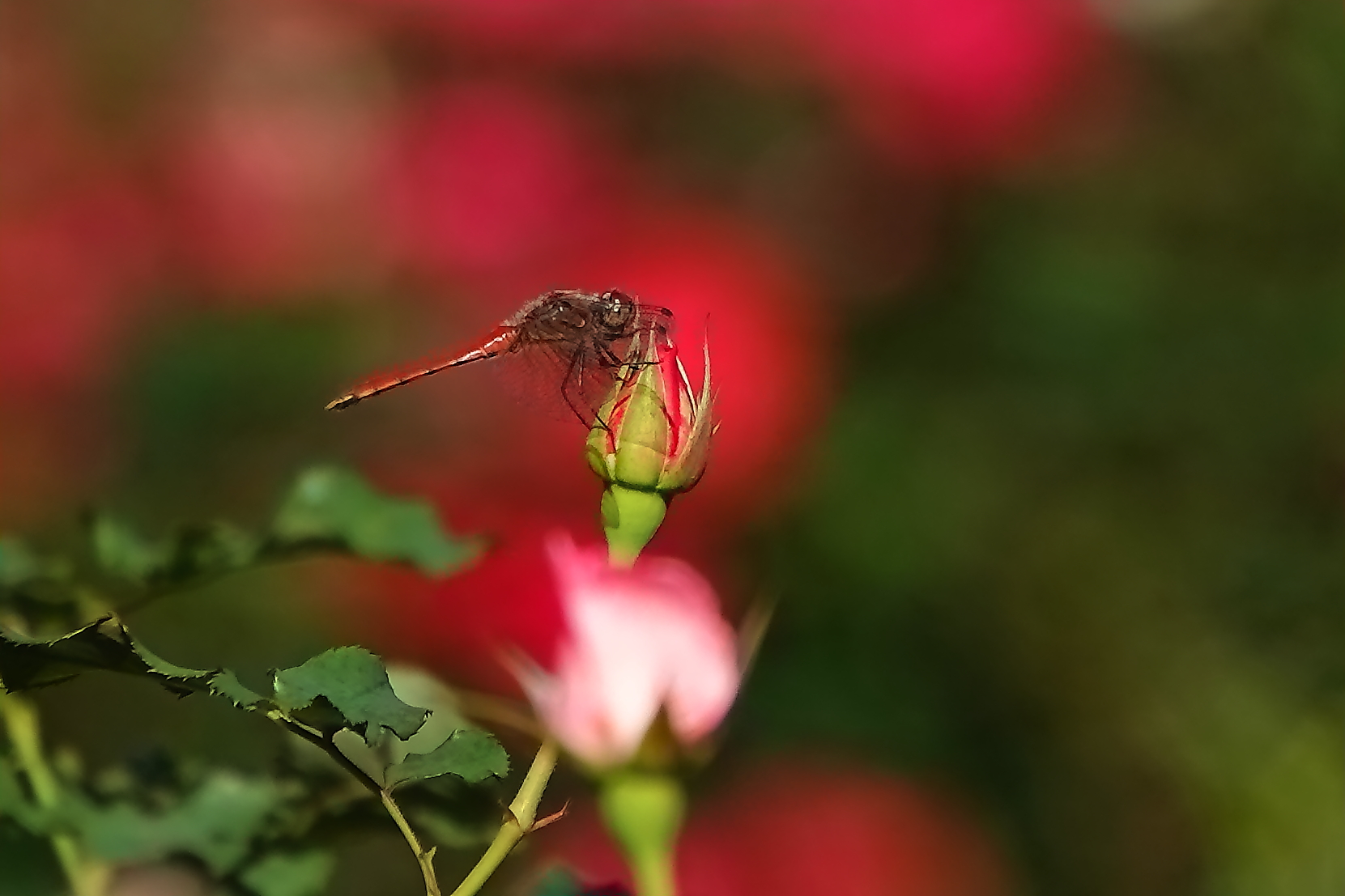 薔薇の蕾に秋茜