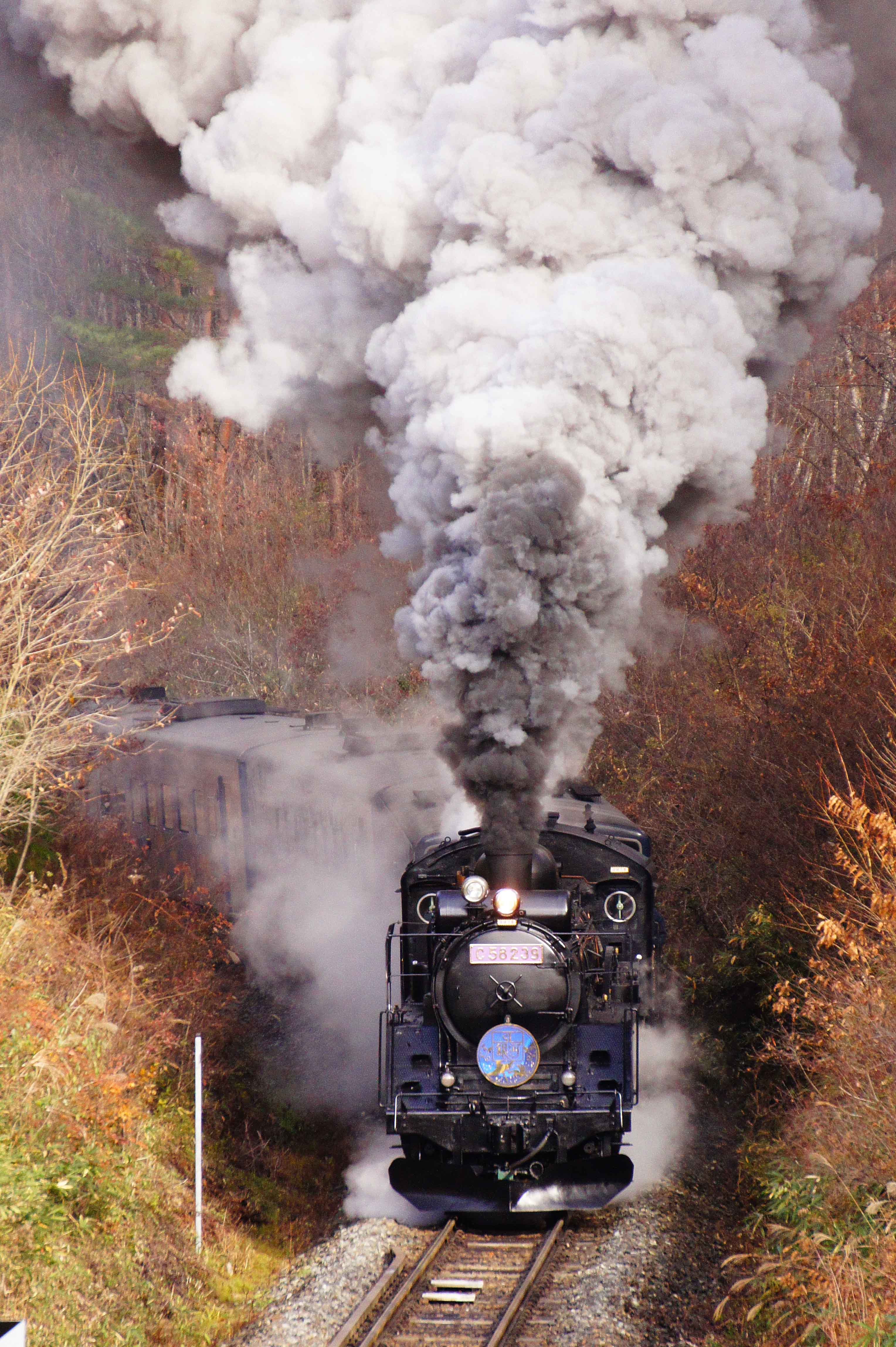 上り勾配の緩S字で人気のスポット。釜石線のSL銀河。