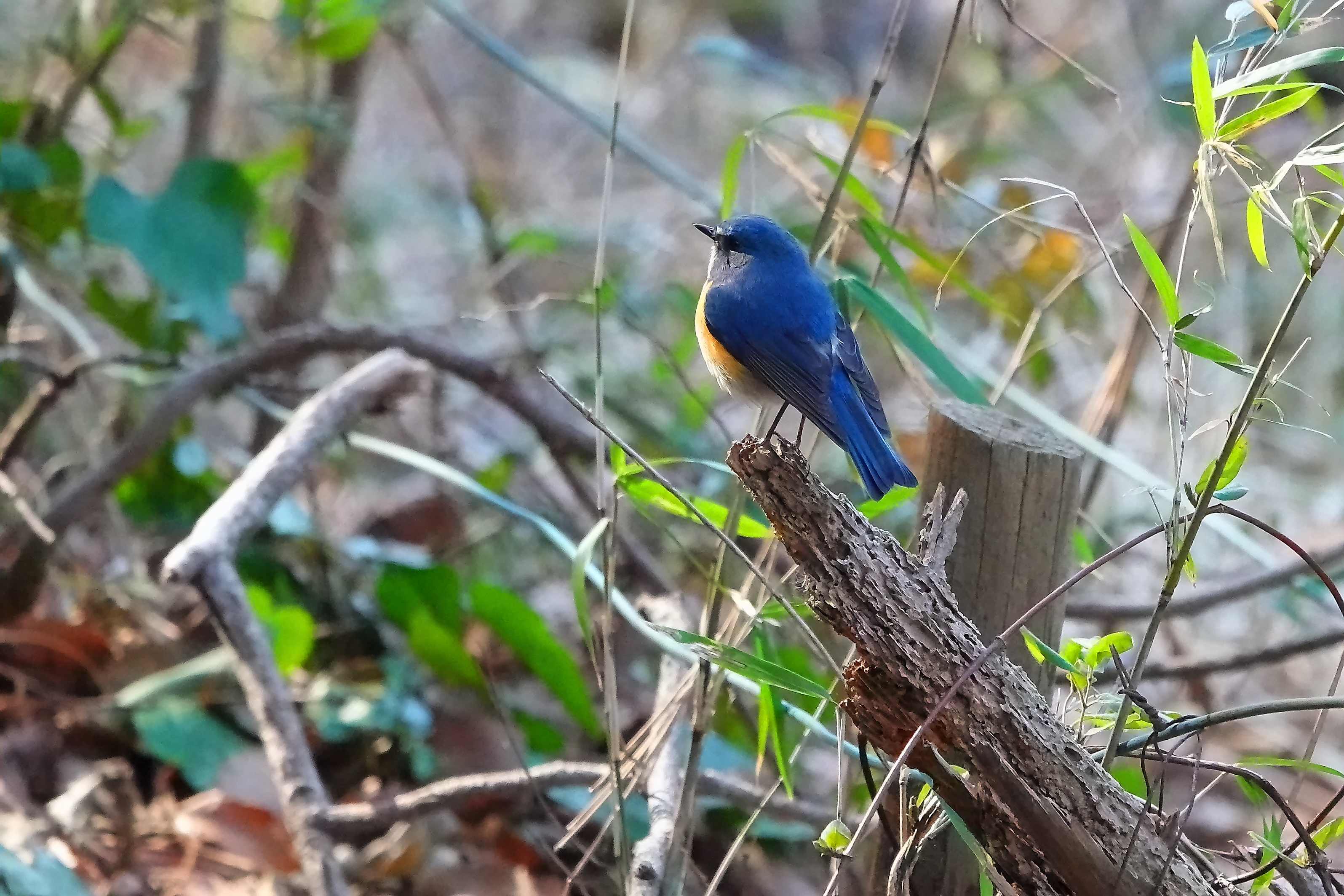 同じ自然公園の中の少し離れた場所で縄張りを張っているルリビタキの雄です。