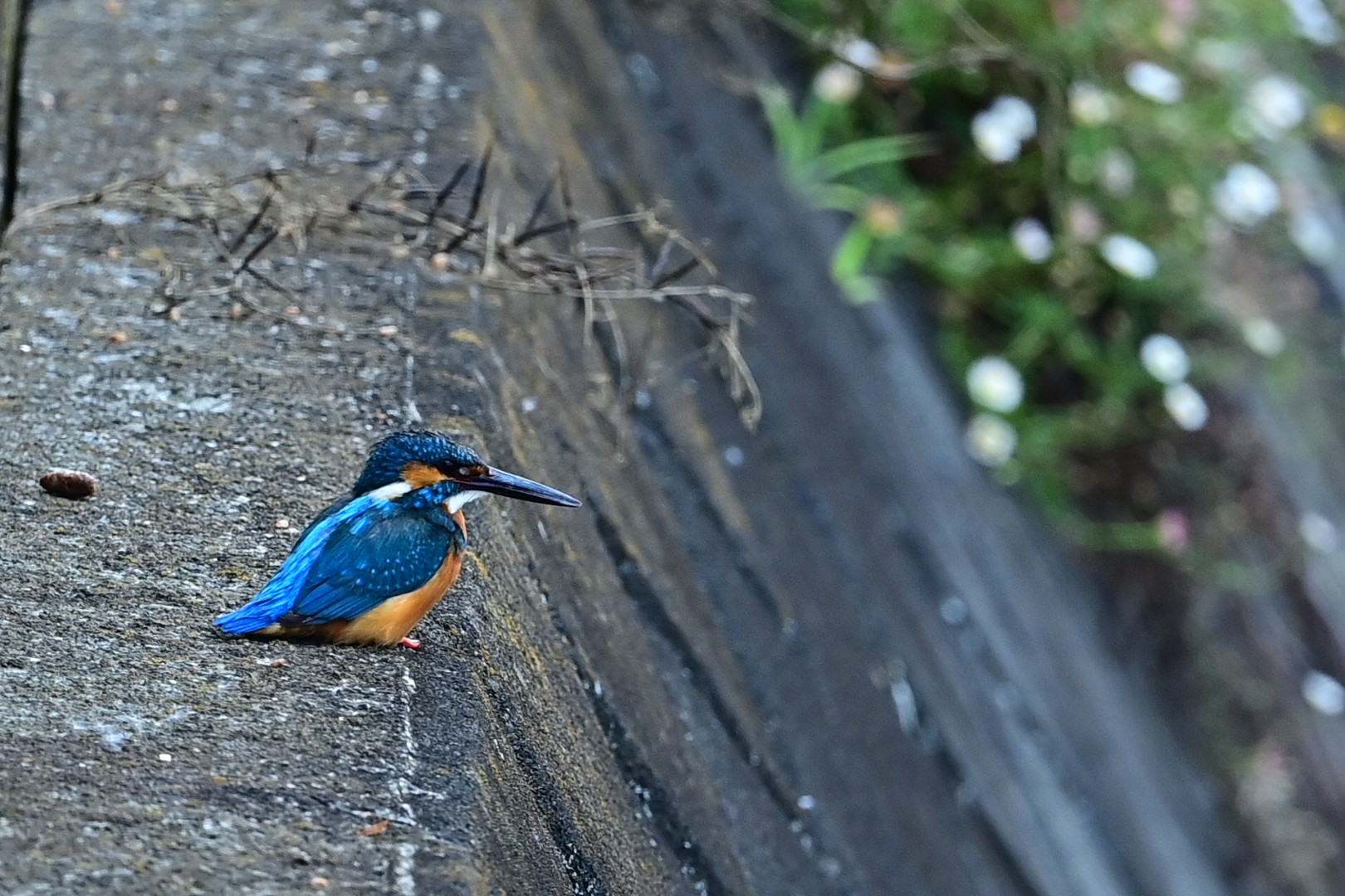 上流から下流側に、カラスが移動したので、上流で翡翠♀が、幼鳥を訓練して、下流側では、翡翠♂がカラスの動向を偵察している様です。何度も、カラスの上空を飛んでいました。危険な任務なので男が担当している様です。