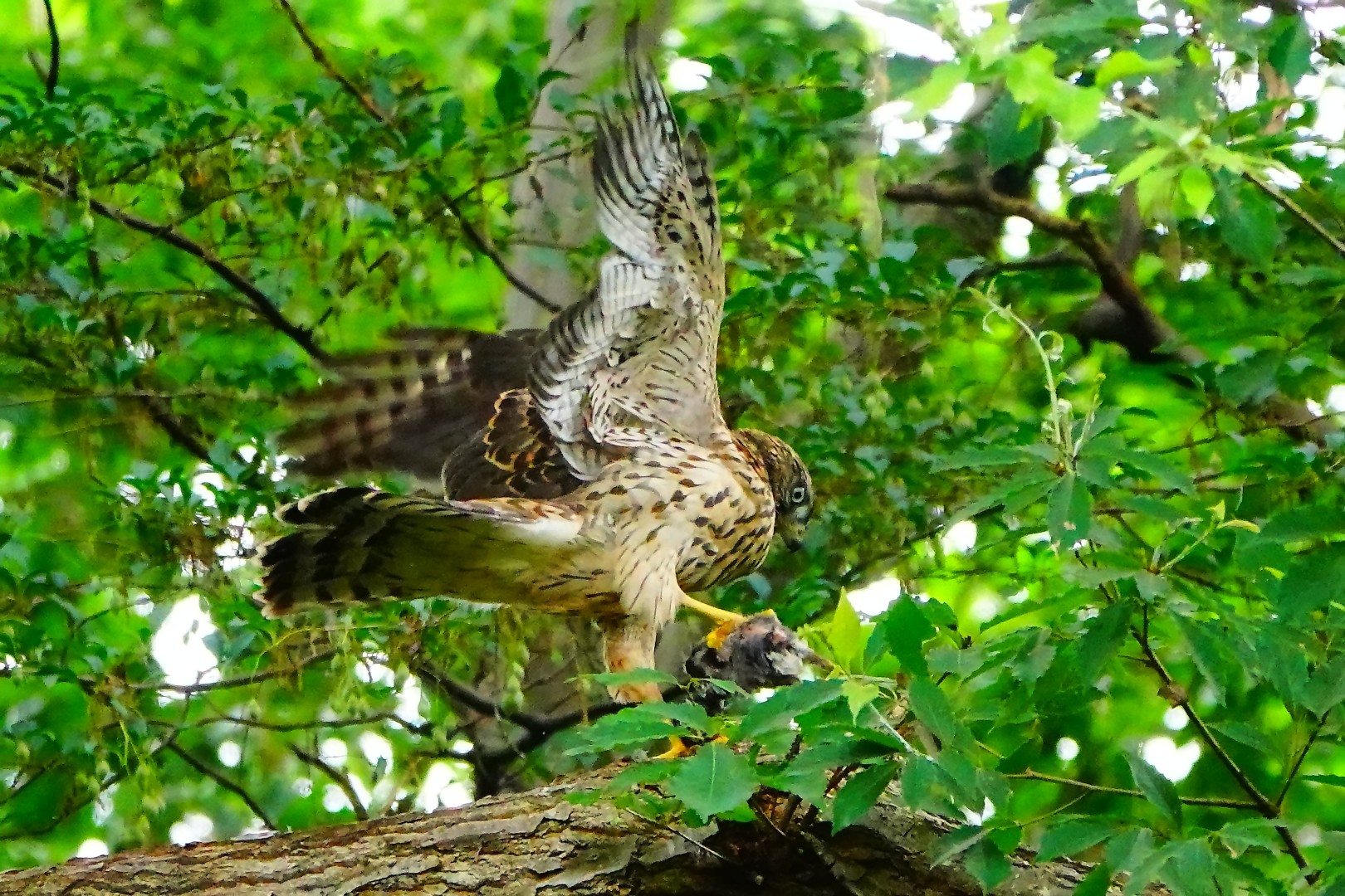 親から餌を貰ったオオタカの幼鳥、狩りはまだまだ先。