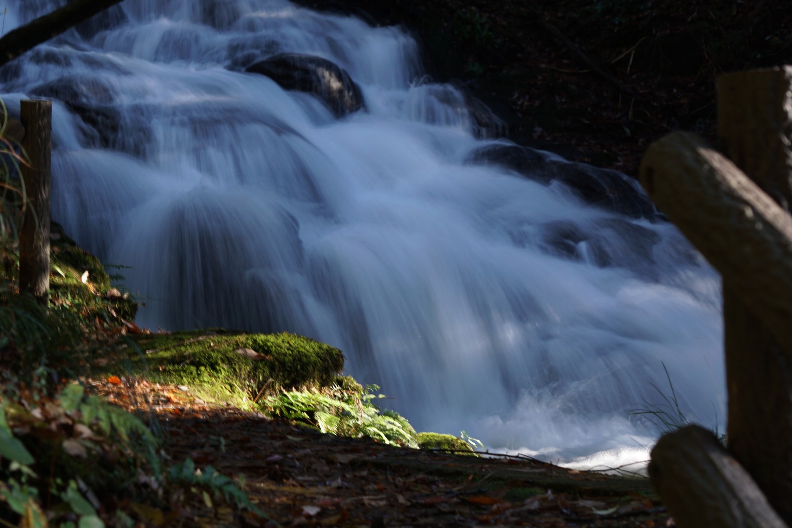 欄干と青い滝