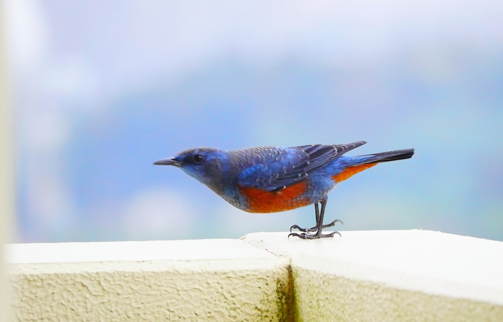 今日も朝早くから美しい鳴き声でベランダで囀ってくれたイソヒヨドリの雄。