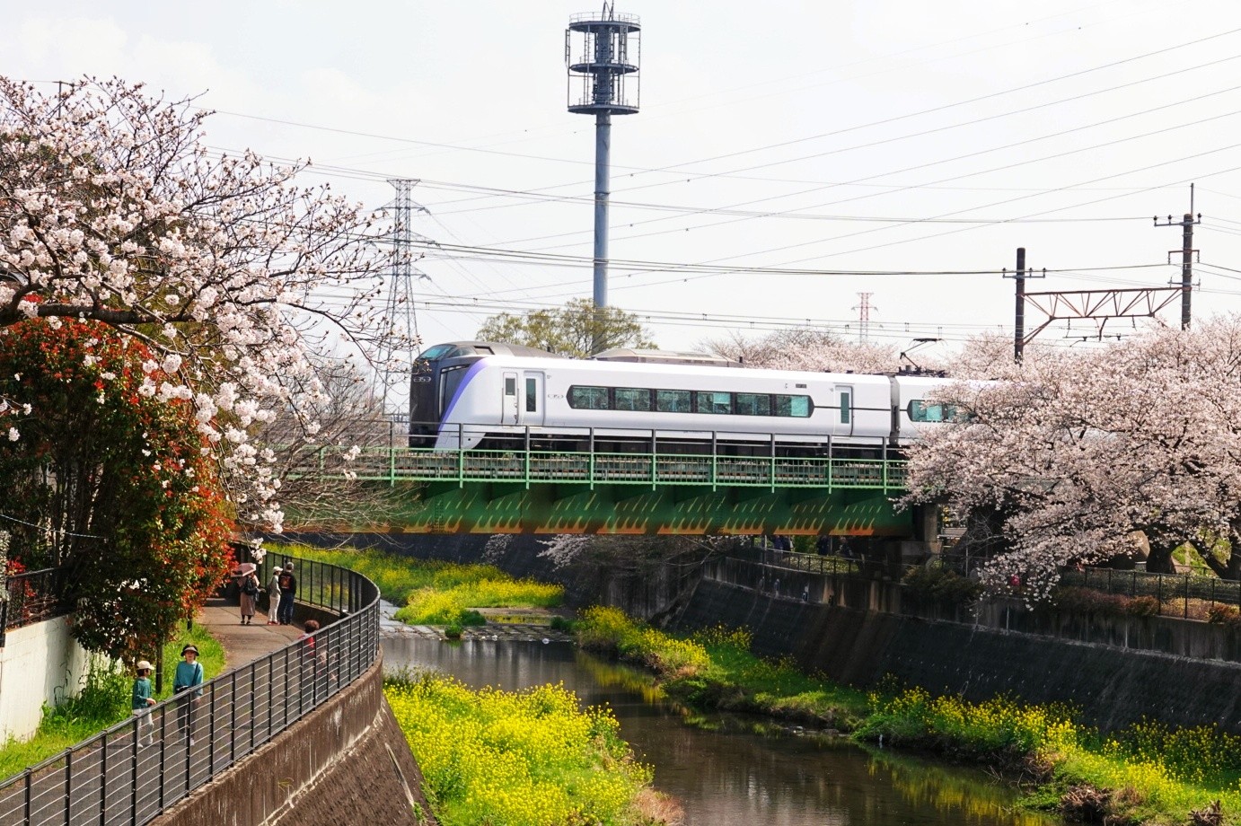 桜とあずさ2号とのハーモニー!