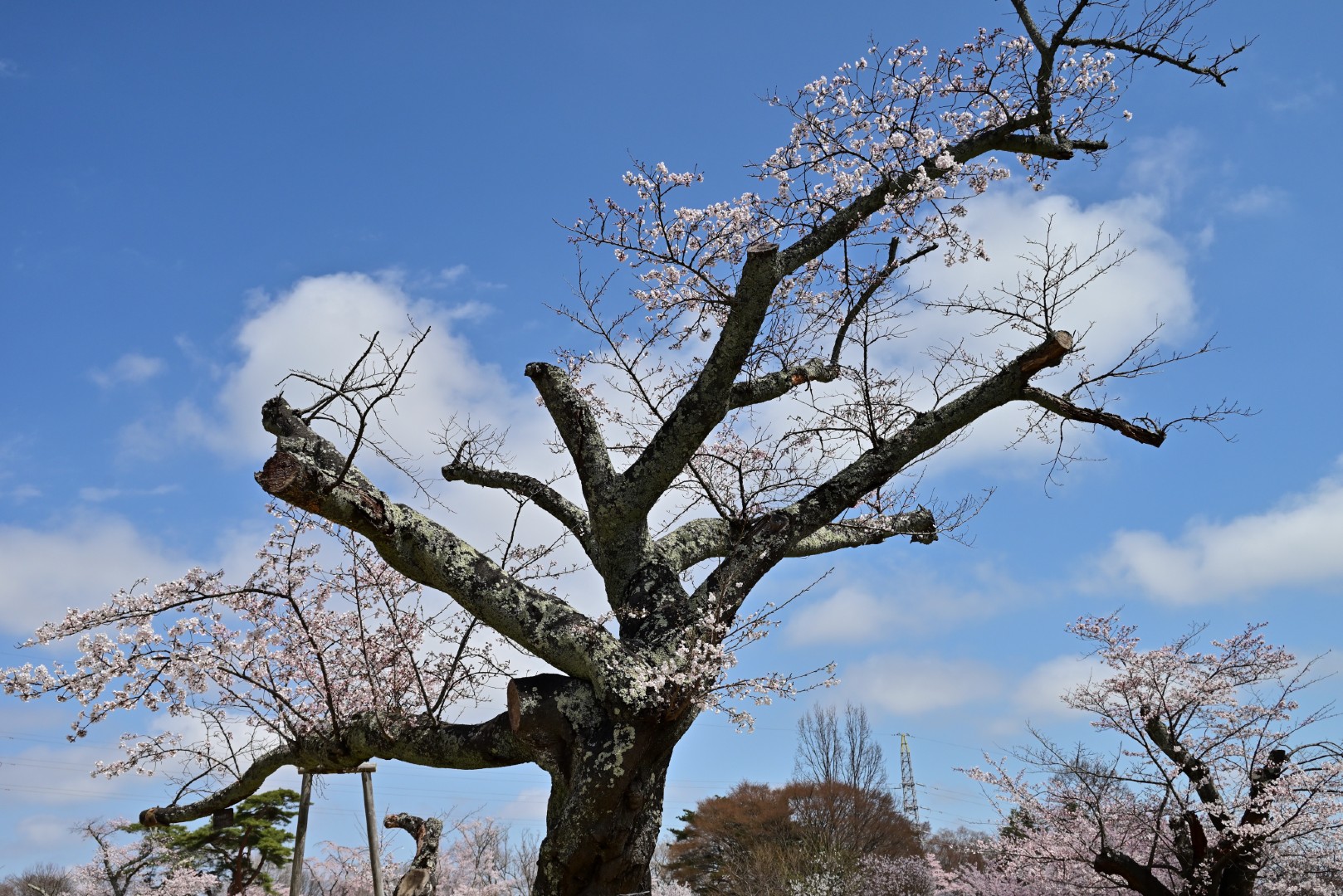 樹齢100年を超える古木。延命の為に枝を切り落とされても、見事に花を咲かせます。