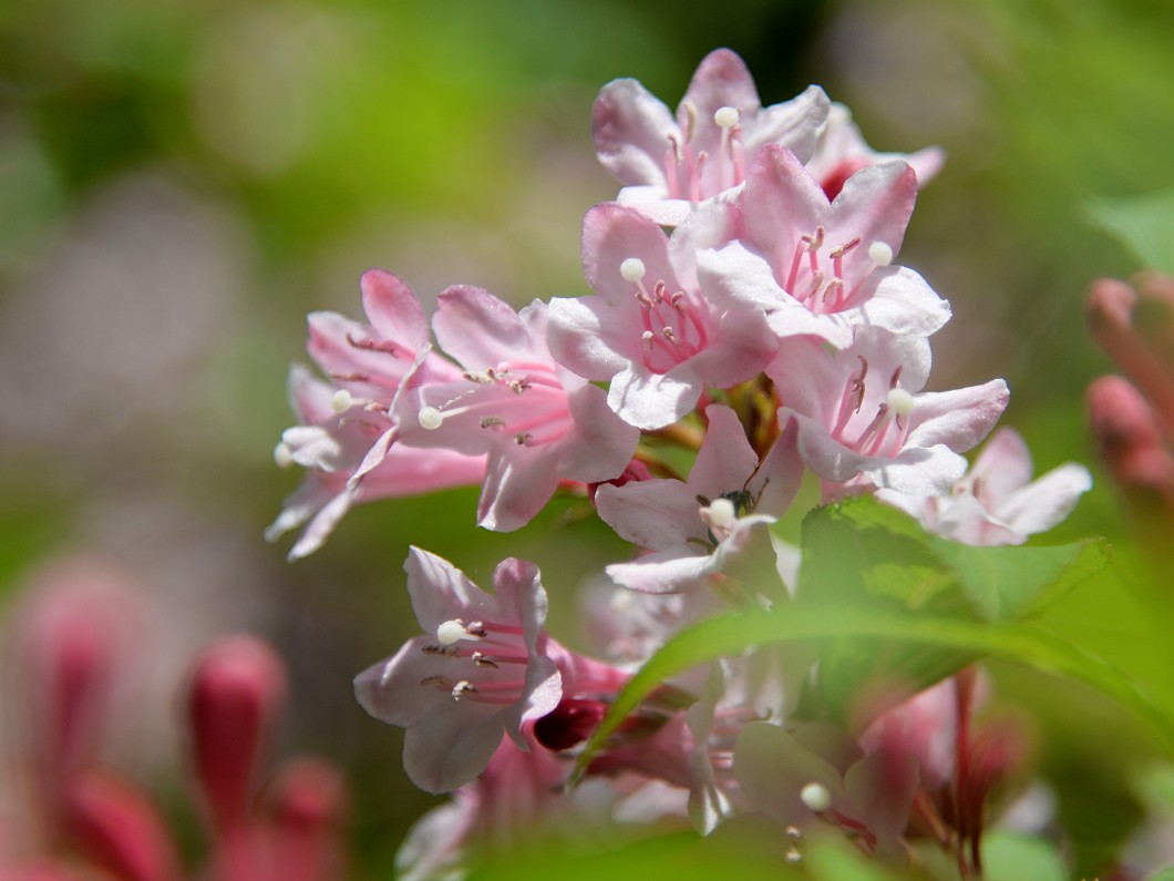谷に沿った林道の所々で、新緑に映えて輝いている花がありました。